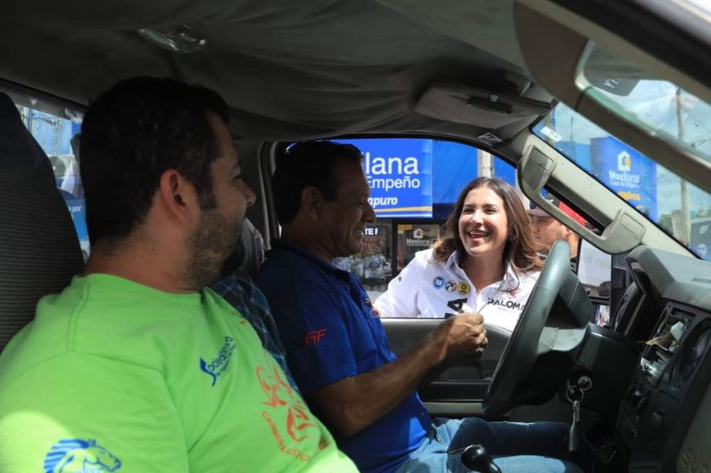 Saludando a los conductores y pidiendo su apoyo para las próximas elecciones, Paloma Sánchez mencionaba que hay que trabajar para que nuestras niñas y niños no tengan que vivir lo que nosotros sufrimos, reiterando que tenemos la responsabilidad porque necesitamos un estado donde no te sientas inseguro al salir, con oportunidades, apoyos para el campo, para los pescadores, ganaderos y más.