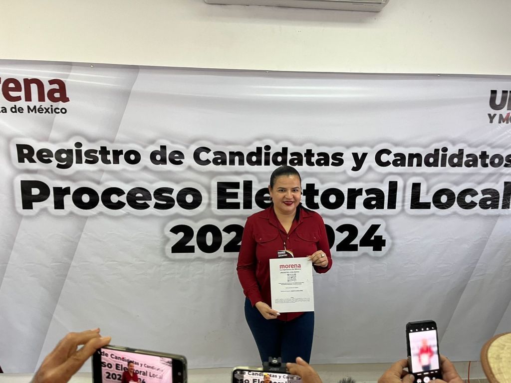 Una vez concluido el registro Margoth Urrea fue abordada por los medios de comunicación, a quienes les dijo estar muy contenta por la oportunidad que le dio su partido MORENA para continuar con la transformación.