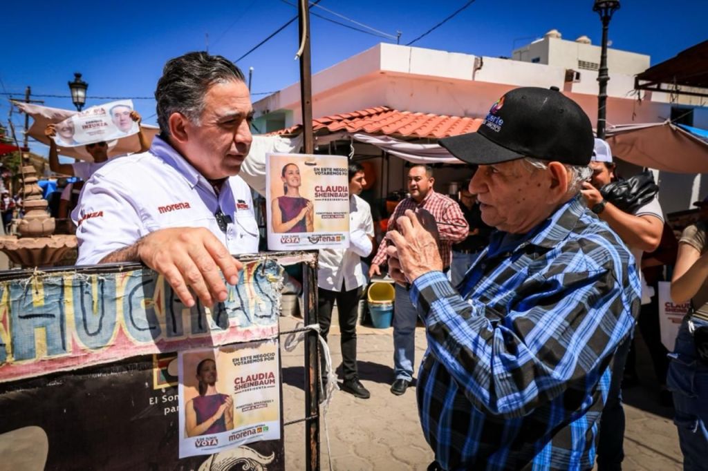 El Fuerte; 03 de abril de 2024.- Enrique Inzunza, candidato al Senado por Morena, siguiendo su travesía cívica visitó el municipio de El Fuerte, interactuando con la comunidad de la cabecera y Barotén, compartió mensajes clave. Durante su recorrido por la zona comercial, escuchó las necesidades de los locatarios y solicitó el voto por Morena. En el mercado, disfrutó del pan de la Panadería Guadalupana y dejó un mensaje enfatizando la importancia de votar por el bien de México y contra la corrupción.