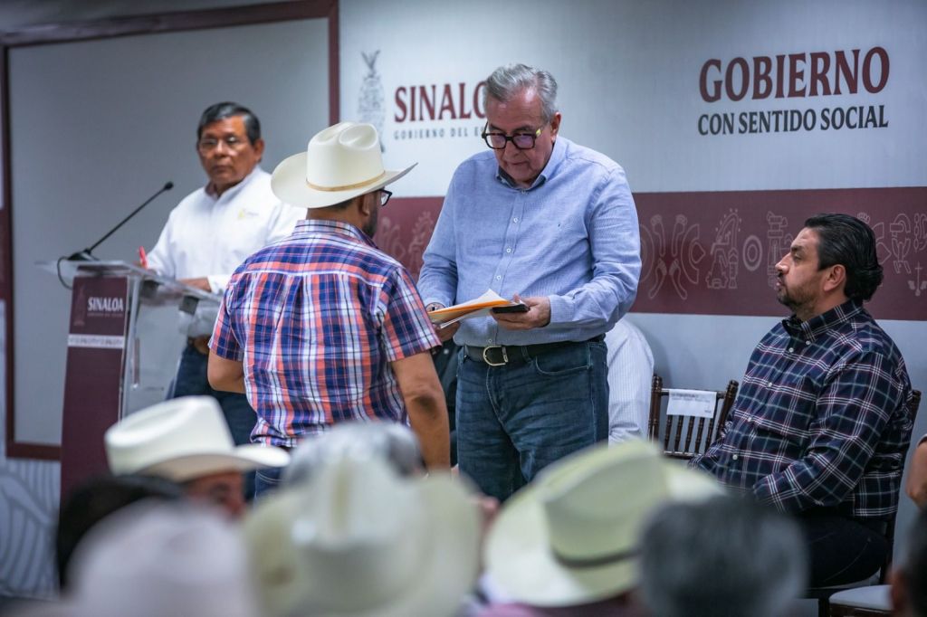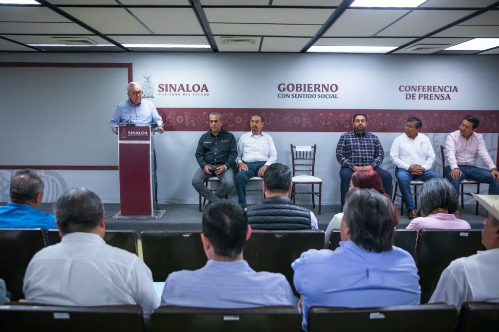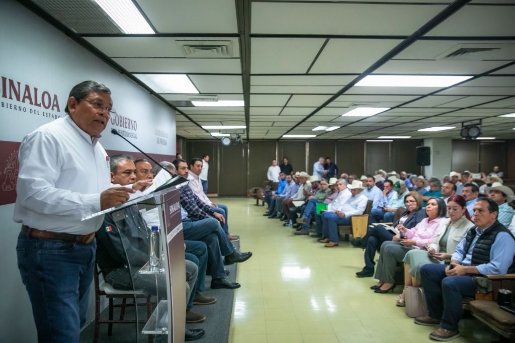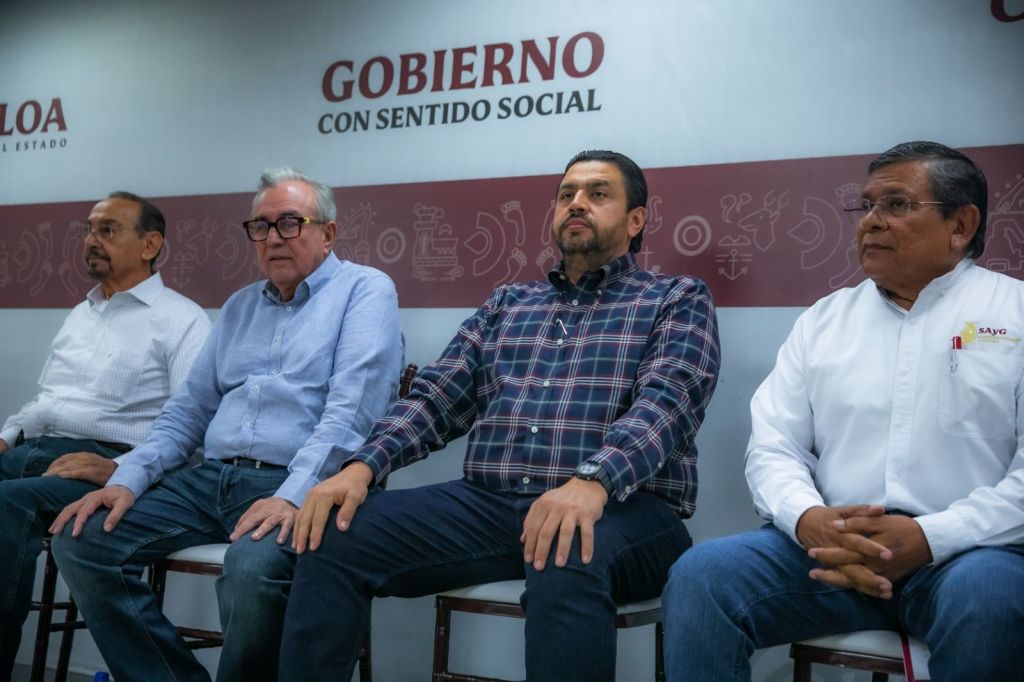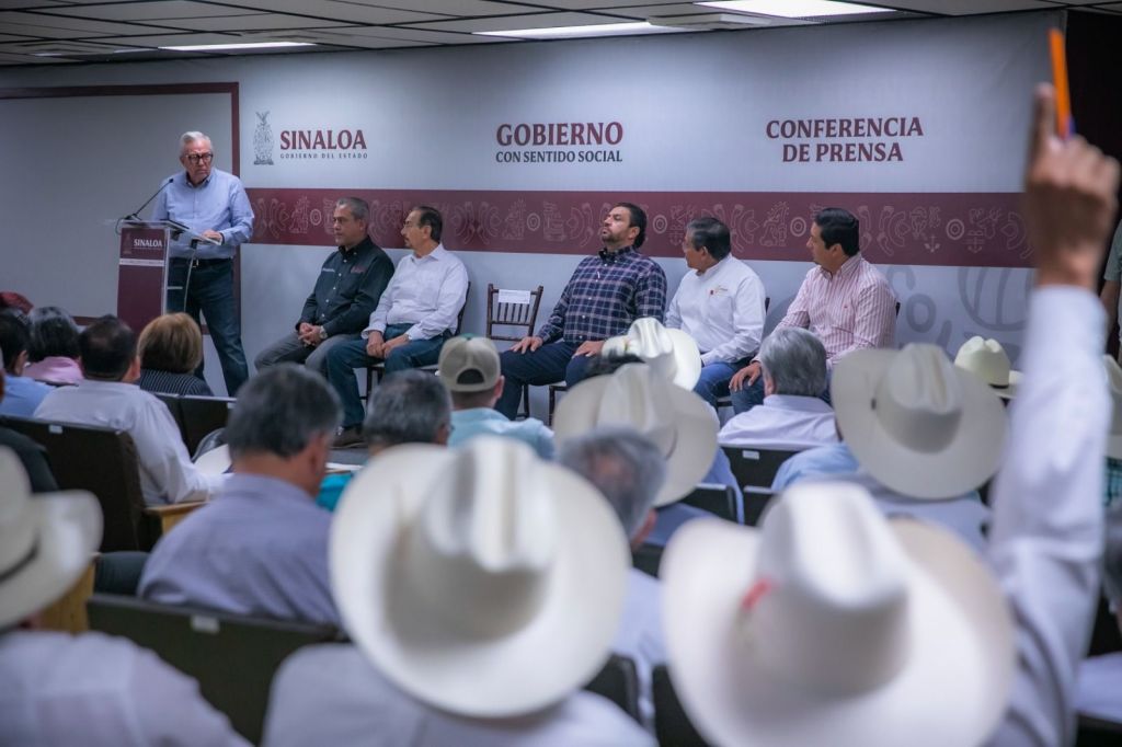 El gobernador Rocha estuvo acompañado en esta reunión por el secretario de Agricultura y Ganadería, José Jaime Montes Salas, quien fue el moderador de la misma; así como por el titular de la oficina de la Representación de la SADER en Sinaloa, Hugo Gómez Arroyo; del subsecretario de Agricultura, Ramón Gallegos; del director del SATES, Ismael Bello Esquivel; y del presidente de la Comisión de Asuntos Agropecuarios del Congreso del Estado, el diputado Feliciano Valle Sandoval.