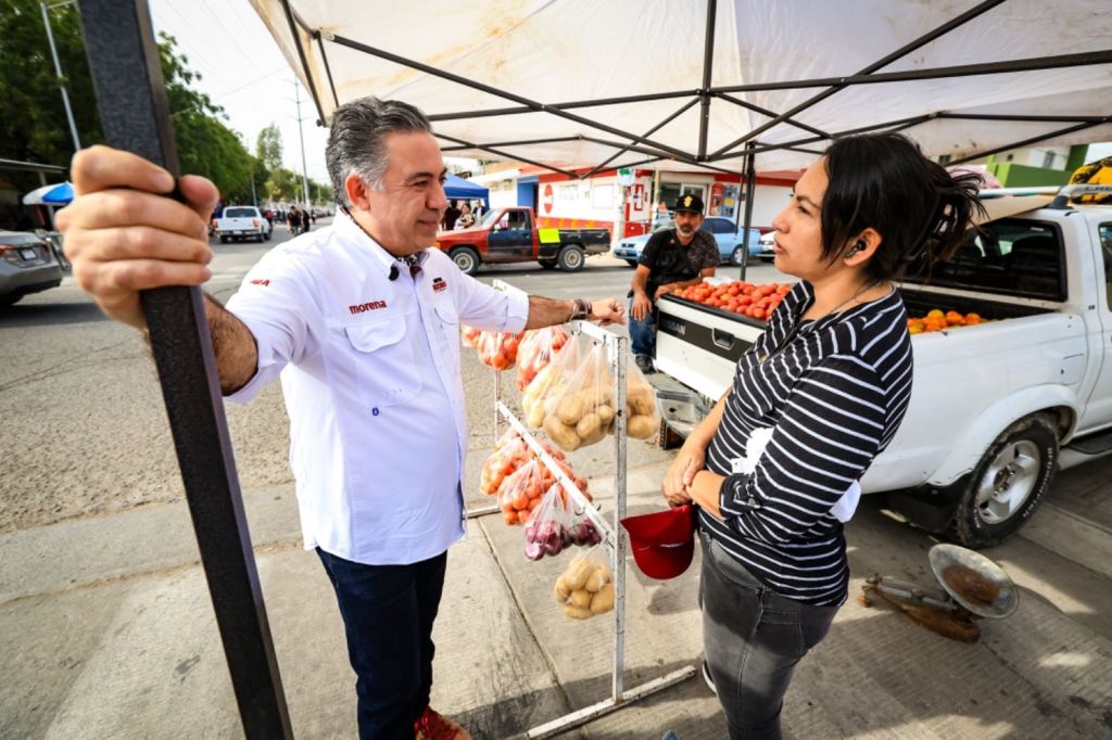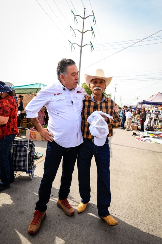 Al abrirse camino entre los puestos del tianguis Guadalupe Victoria, se pudo sentir la bienvenida a los representantes de los gobiernos de la 4T, y las muestras de agradecimiento y afecto no se hicieron esperar. “¡Arriba Morena!”, “Estamos con Usted” y “Cuente con nuestro voto”.