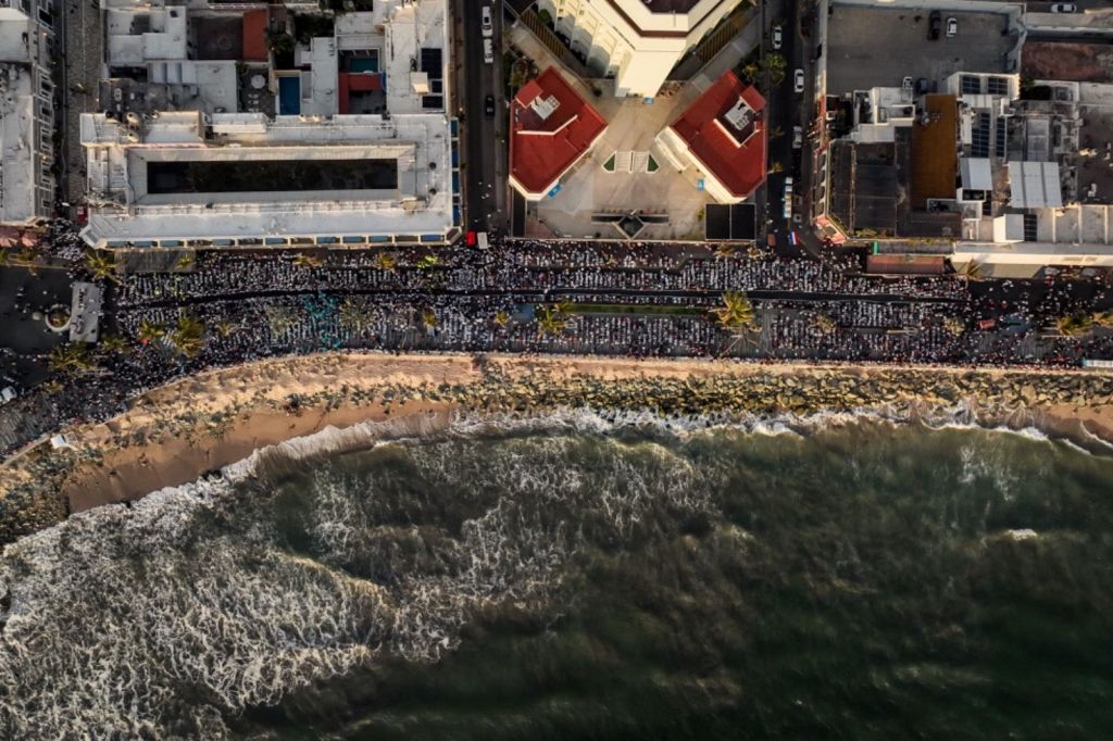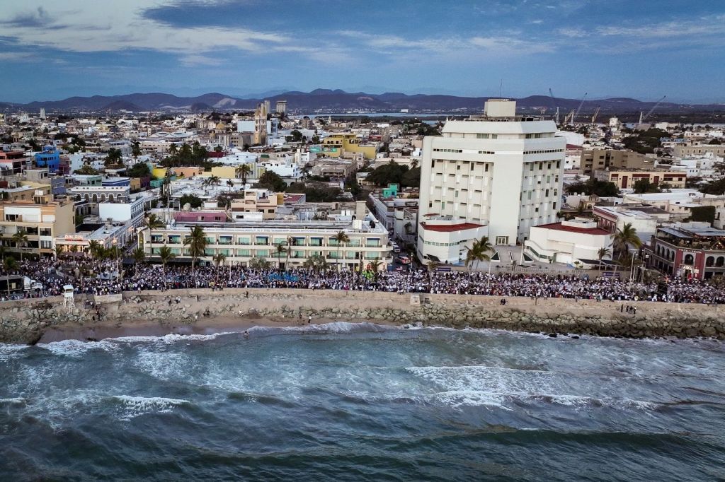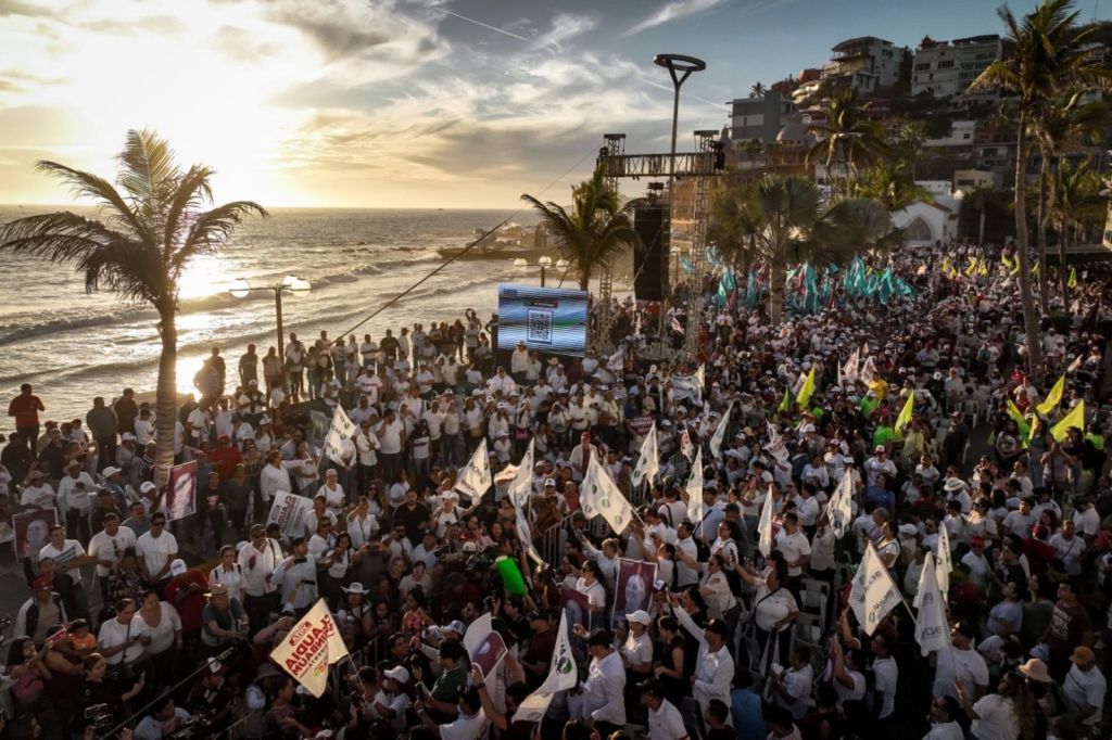 La candidata presidencial Claudia Sheinbaum Pardo cerró su recorrido por Sinaloa, en el puerto de Mazatlán, teniendo como telón de fondo un bello atardecer, recibiendo el calor de los sinaloenses del sur-sur del estado, que efusivamente la recibieron entre fotos, porras y aplausos. Al ritmo de ‘El Sinaloense’ agradeció a todos las muestras de cariño expresando su aprecio a Sinaloa y su gente, pues su esposo Jesús Tarriba es oriundo de la Perla del Pacífico.