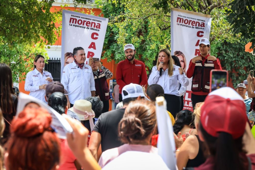 La candidata Yeraldine Bonilla, destacó “los beneficios que los programas sociales de este gobierno de la 4T, han traído al municipio enfocándose en la creación de la Universidad Benito Juárez, para que «salgan adelante y sean jovenes de futuro, que saquen adelante a su familia».