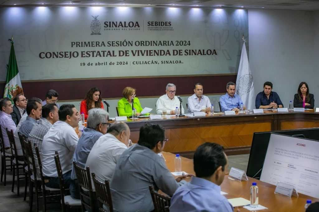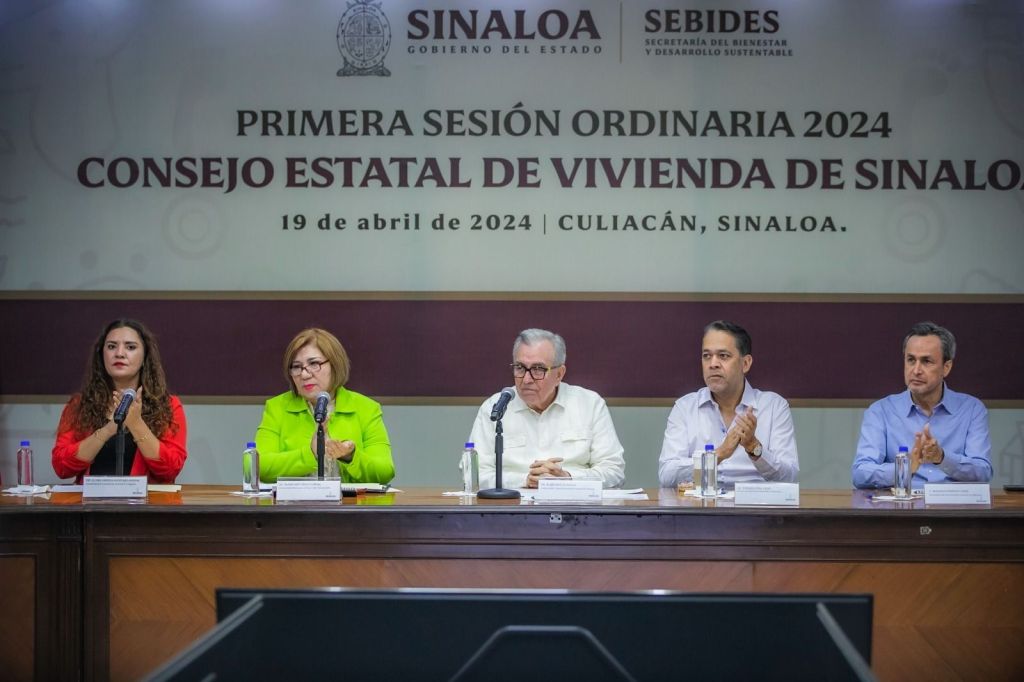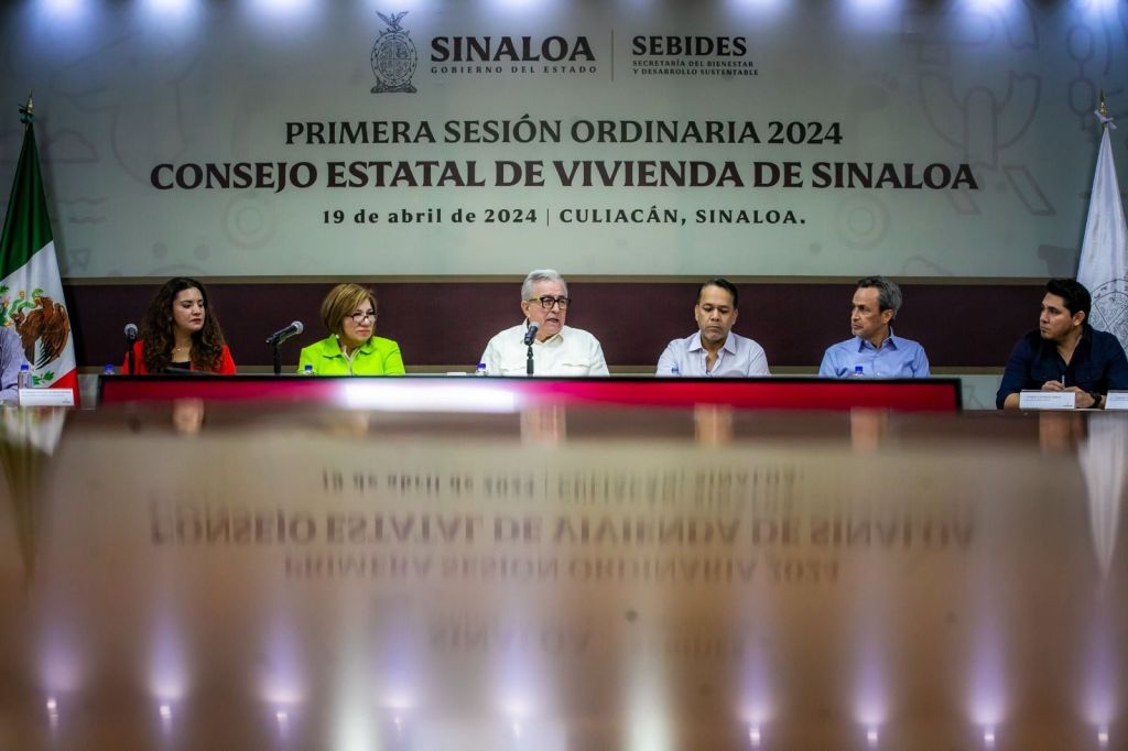 Culiacán, Sinaloa, a 19 de abril de 2024.- El gobernador Rubén Rocha Moya encabezó la Primera Sesión Ordinaria 2024 del Consejo Estatal de Vivienda del Estado de Sinaloa, que se realizó con el propósito de aprobar el Programa Estatal de Vivienda de este año, para el cual ya se autorizaron los recursos necesarios por parte del Gobierno del Estado.