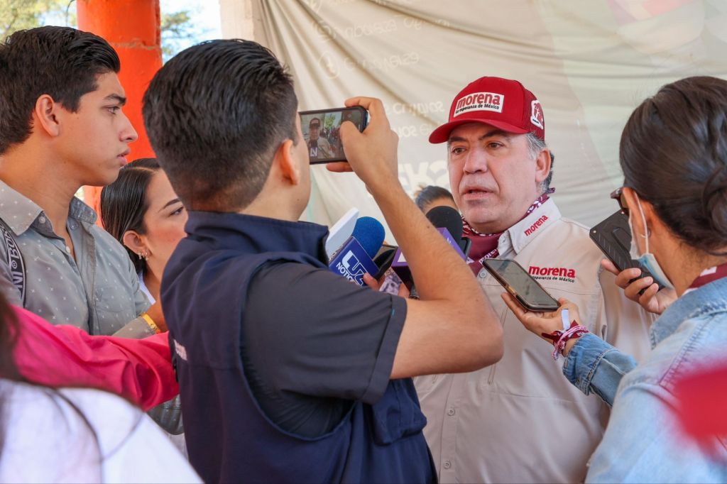 En esta travesía tuvieron la oportunidad de platicar directamente con los vecinos, como la morenista Silvia Beltrán que no ocultó su entusiasmo por tener al candidato al Senado de la República en su negocio, entablando una agradable conversación, además de solicitarle que aclaren el tema de las pensiones del Bienestar pues hay gente preocupada por la desinformación que los «contrarios» transmiten, y refrendándole «tiene mi voto y muchos más aquí es puro Morena».