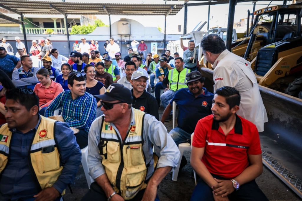 Dentro de su travesía visitó el Grupo constructor Michel, donde saludó a los trabajadores asegurando que «Morena representa los intereses, derechos, la esperanza de un futuro de igualdad y justicia de la mayoría de las y los mazatlecos».