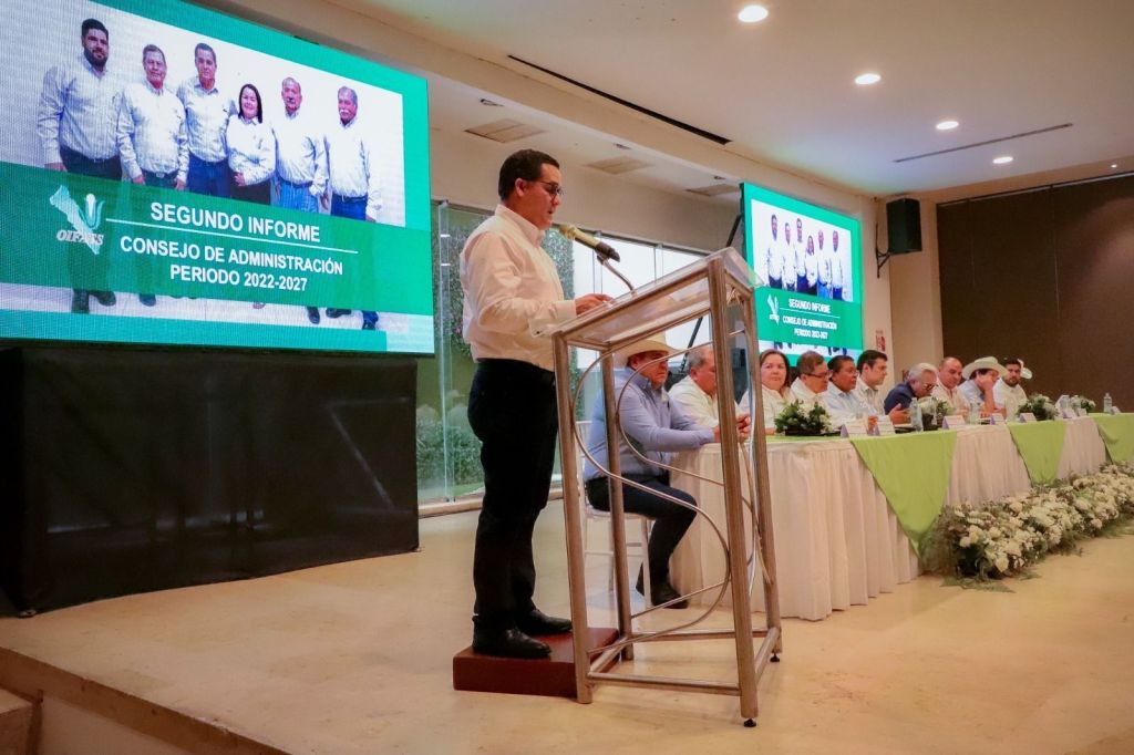 Culiacán, Sinaloa, a 26 de Abril de 2024.- Como parte de la política de atención a organizaciones agropecuarias, este viernes el Gobernador Rubén Rocha Moya acudió como invitado especial a la Asamblea General Ordinaria del Organismo Integrador de Fondos para el Aseguramiento del Estado de Sinaloa (OIFAES), que preside Jesús Antonio Lazcano Gastélum y cuya función es brindar asesoría técnica en sus operaciones, a través de servicios legales, administrativos, financieros y de consolidación.