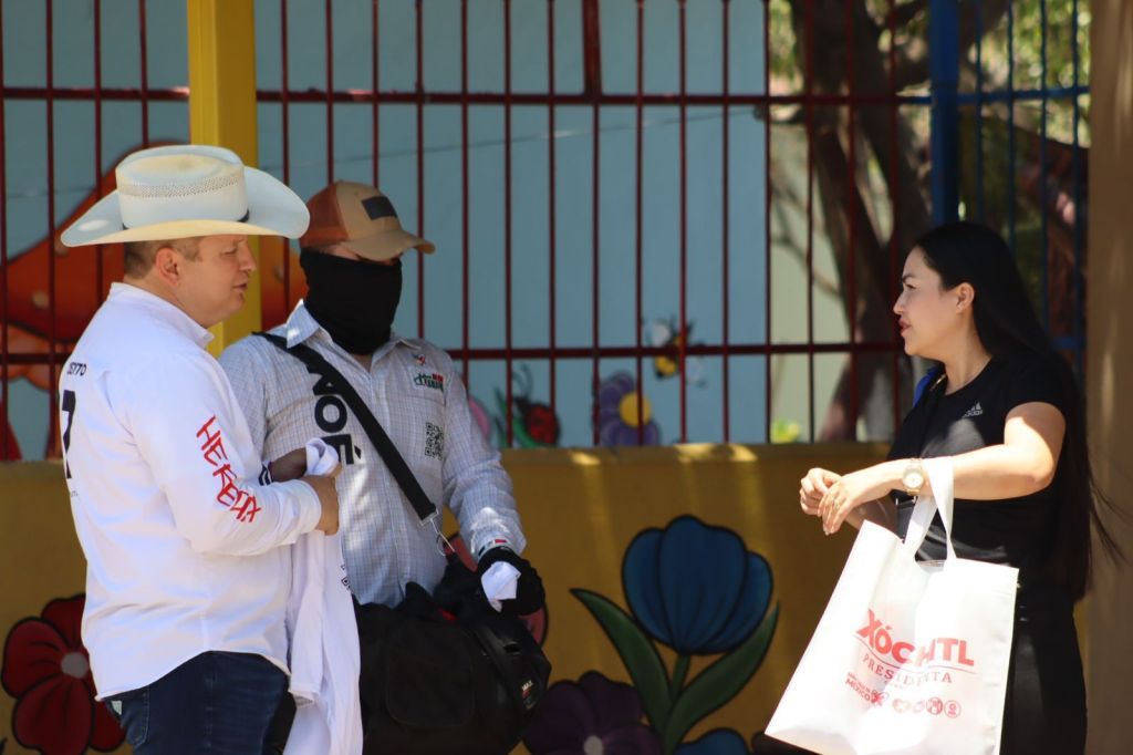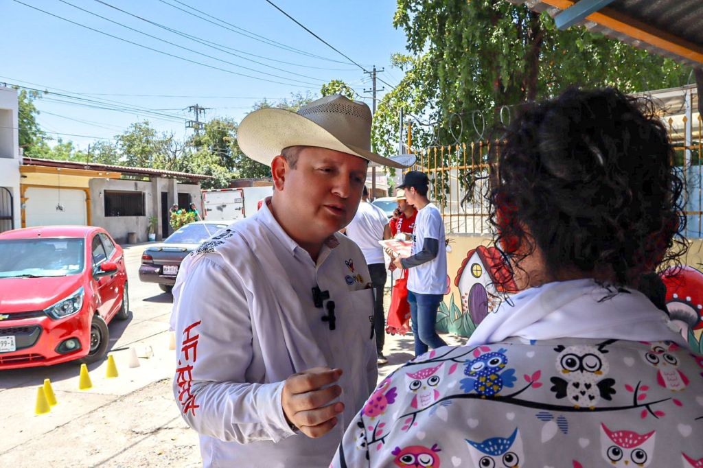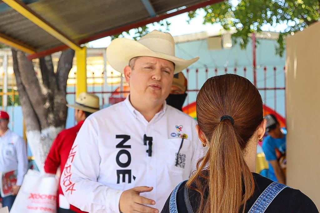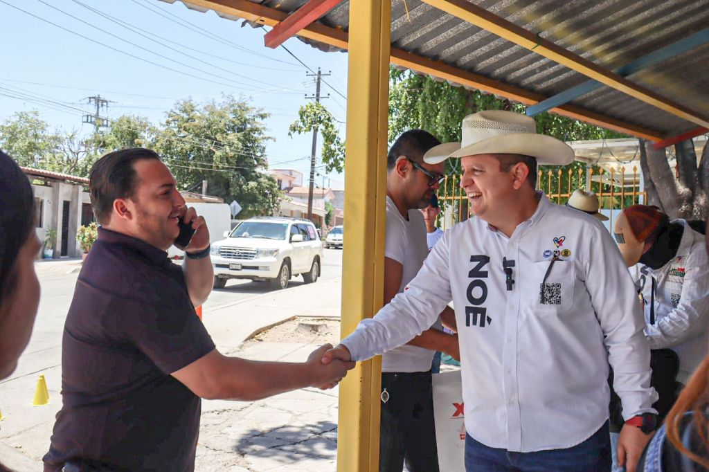 Noé Heredia acudió este día a saludar a comerciantes, padres de familia del jardín de niños y primaria de la colonia Sinaloa, y culminará sus actividades yendo a dialogar con comerciantes del centro de la ciudad, saludo a automovilistas y transeúntes en el crucero de la caseta cuatro y en entrevista radiofónica.