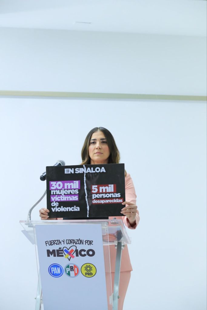 Lo anterior, tras señalar que, «como a todos los sinaloenses, a mí también me duele lo que nos está pasando; Morena lo está destruyendo todo y yo quiero que juntos defendamos lo que está bien hecho; me duelen las injusticias, me duele ver que a la gente no les alcanza ni para comer, que las mujeres son víctimas de violencia, que los periodistas son perseguidos, que la gente muere esperando atención y medicamentos», dijo, previo al minuto de silencio que pidió y tomó de su tiempo y que la candidata solicitó «por todas las voces silenciadas en nuestro estado».