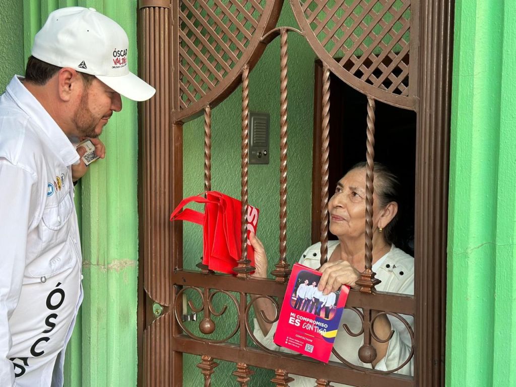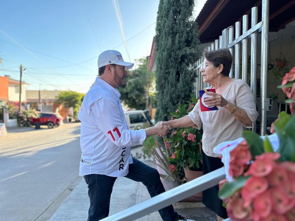 Acompañado de su hijo Óscar Valdez Bazúa, quien es candidato a regidor en la fórmula de Érika Sánchez, candidata a la presidencia municipal por Culiacán, Valdez López abordaba a los ciudadanos, a quienes les preguntaba sobre las necesidades de la comunidad.