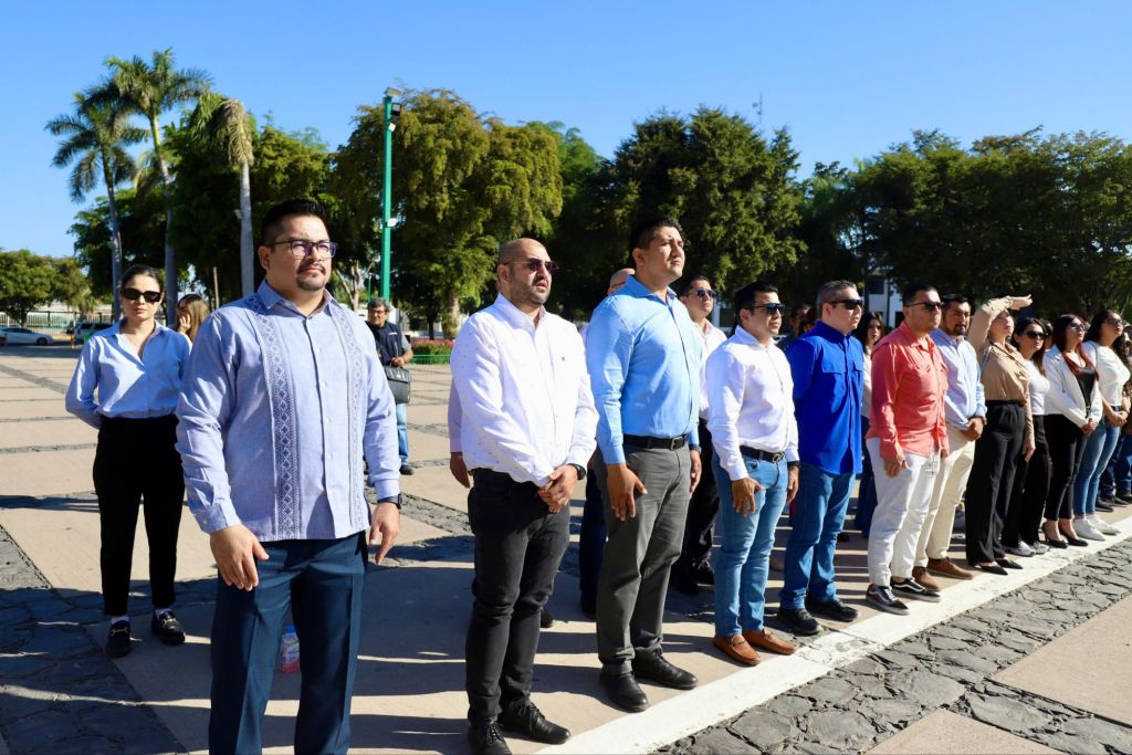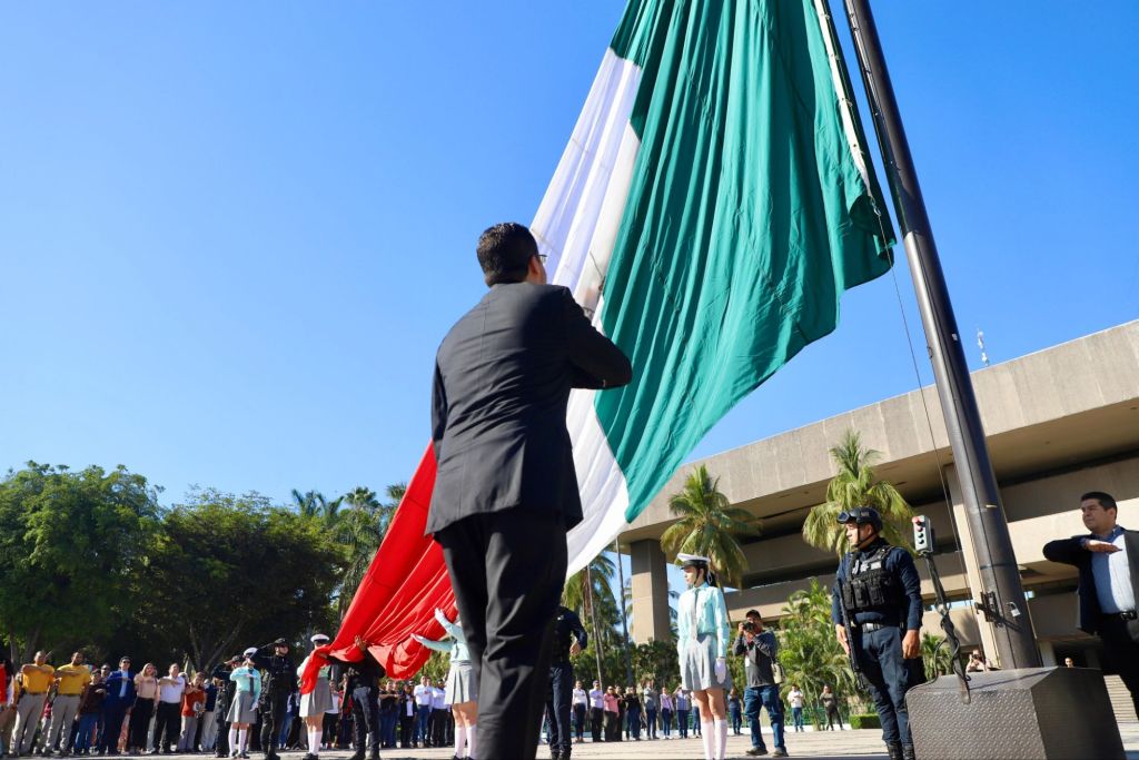 Junto a diversas autoridades civiles y militares se llevó a cabo un izamiento de bandera a toda asta y con Honores de Ordenanza en la plaza cívica de Palacio de Gobierno.