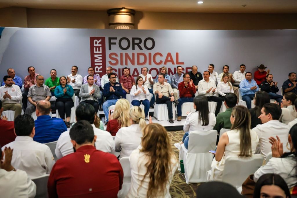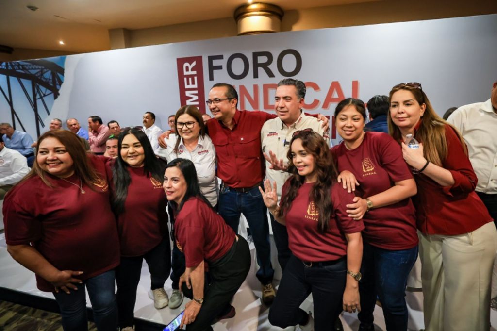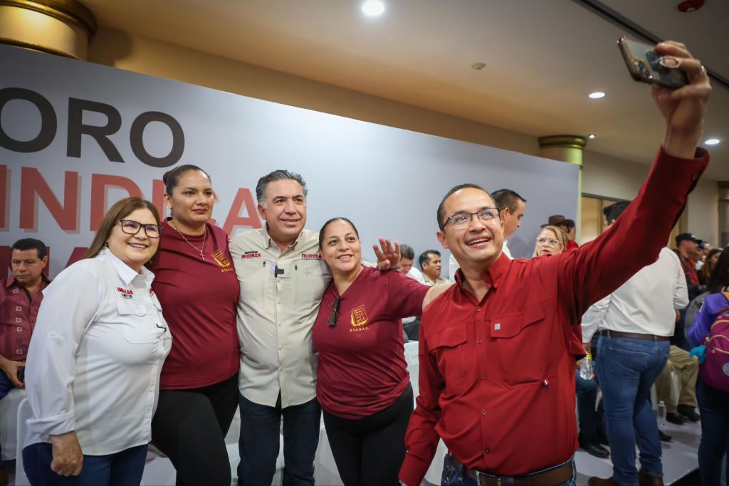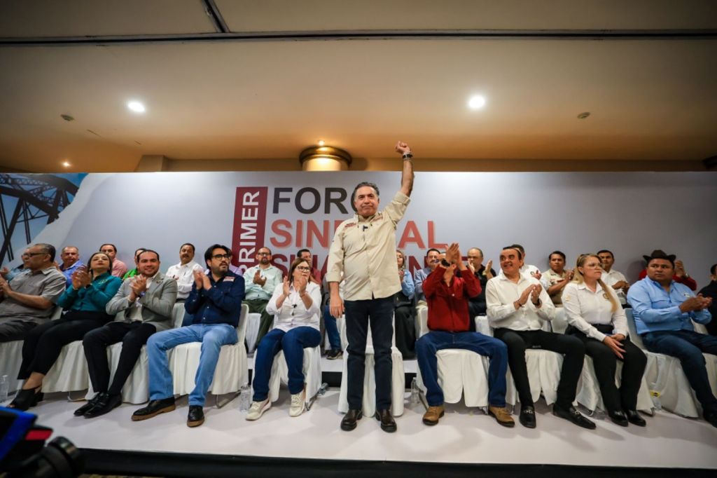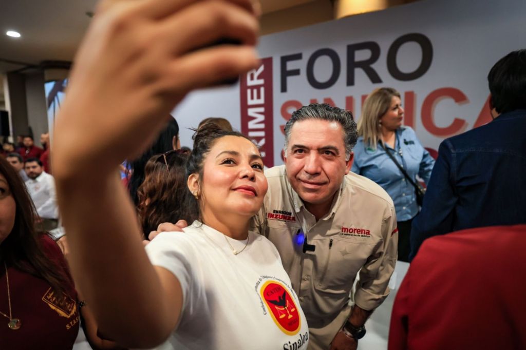 Culiacán; 01 de mayo de 2024. En el marco de la conmemoración del Día Internacional del Trabajo, los candidatos al Senado por Morena Enrique Inzunza e Imelda Castro junto a Juan de Dios Gámez, candidato a la Alcaldía de Culiacán participaron en el Primer Foro Sindical Sinaloense, Perspectiva de la Reforma Laboral; acompañados de líderes del Sindicato de Trabajadores al Servicio del Ayuntamiento de Culiacán (Stasac); el Sindicato de Trabajadores al Servicio del Gobierno (Stase) y la Confederación Autónoma de Trabajadores y Empleados de México (CATEM-Sinaloa). También participaron líderes de los Ayuntamientos del estado, salud, transporte, música, construcción, entre otros, a fin de continuar con la lucha de los trabajadores por mejores derechos y condiciones laborales más justas.