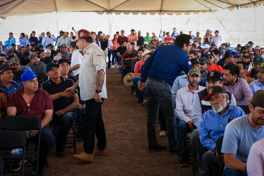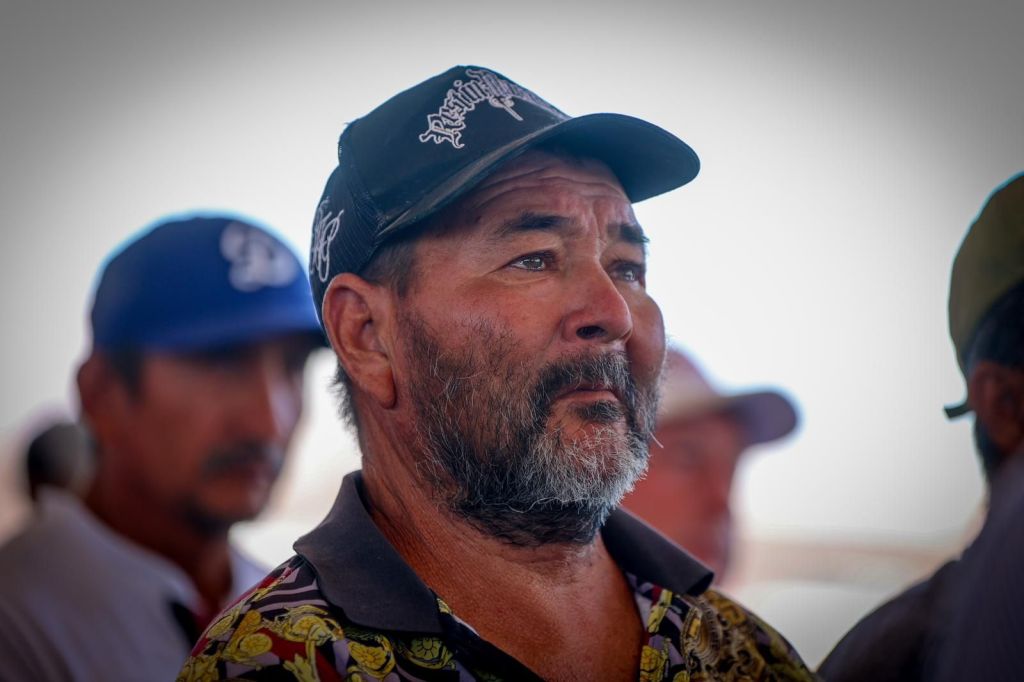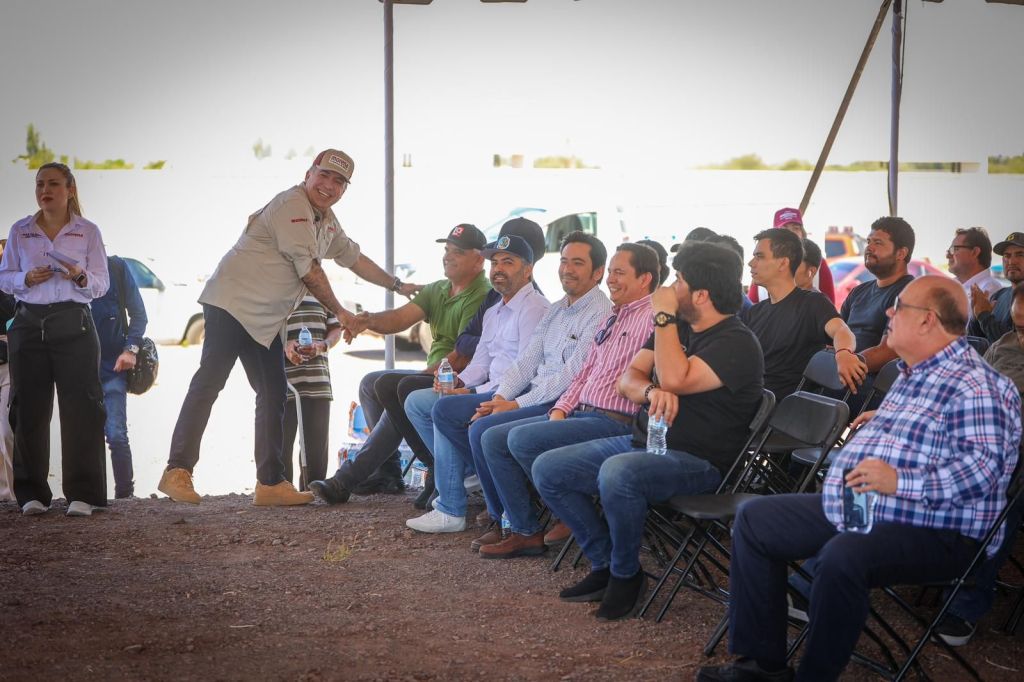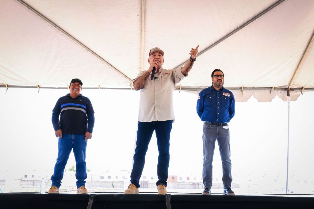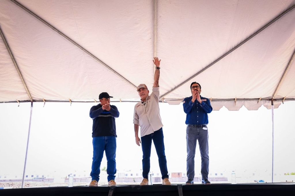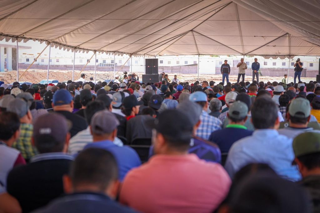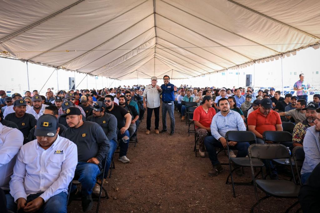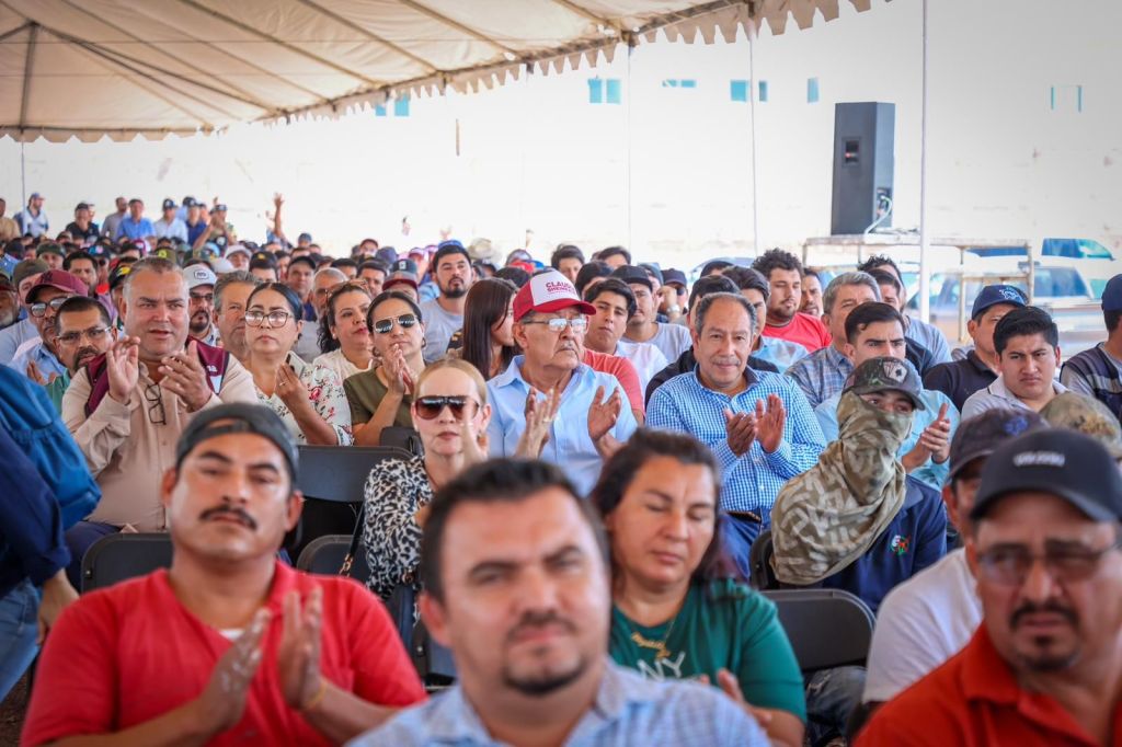 «Ya llegó la cal de piedra y aquí me tienen ahora”, dice Enrique Inzunza ante más de un millar de trabajadores de la pala y la cuchara.