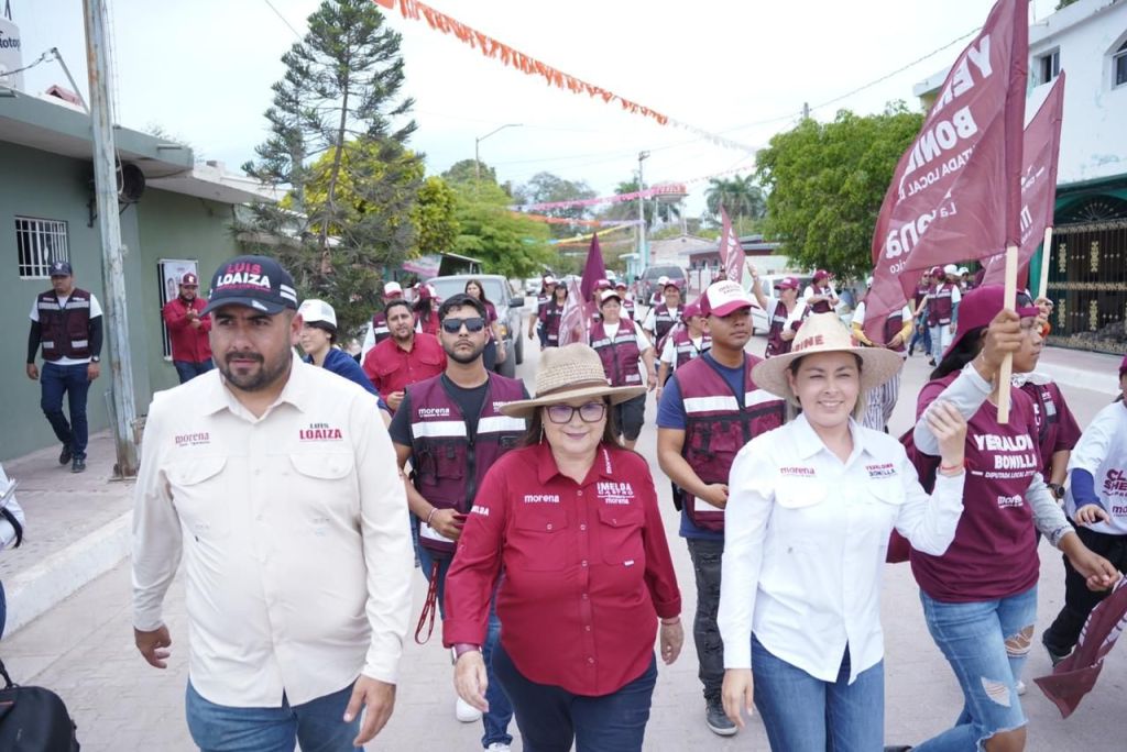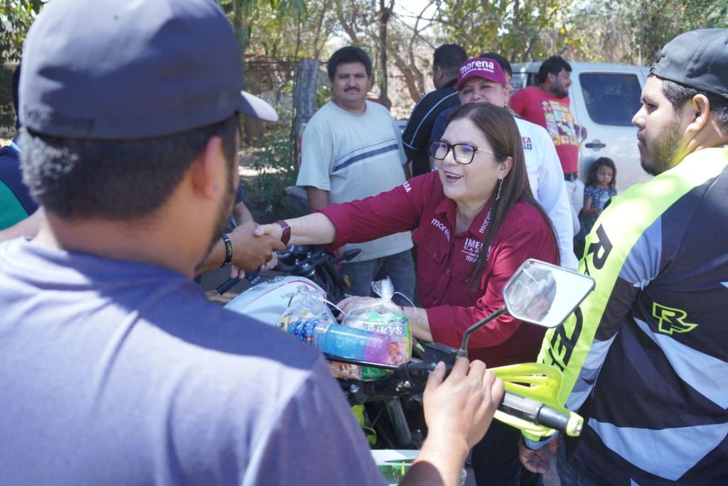 Más tarde, la candidata a la elección consecutiva por el Senado de la República visitó Piaxtla de Abajo, en San Ignacio, donde realizó un recorrido casa por casa junto a Luis Loaiza y Yeraldine Bonilla, candidatos de Morena a la alcaldía de dicho municipio y a la diputación local por el distrito XIX, respectivamente. Los tres candidatos tocaron puertas y conversaron con los vecinos por espacio de una hora.