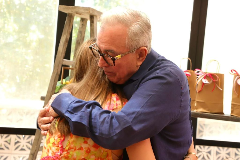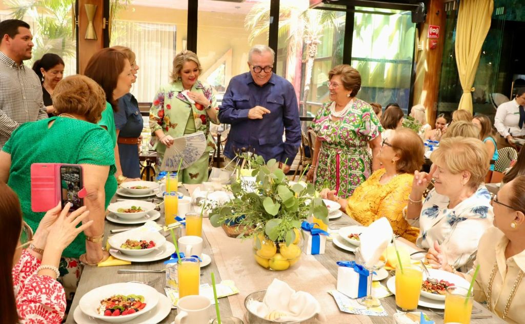 En compañía de su hija, la doctora Eneyda Rocha Ruiz, en su calidad de anfitriona, el gobernador Rocha saludó a todas las madres que asistieron a un desayuno ofrecido por el DIF.