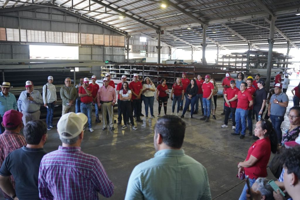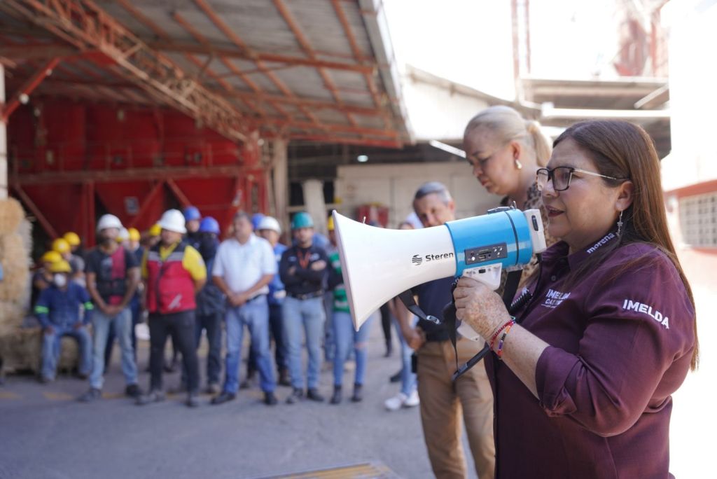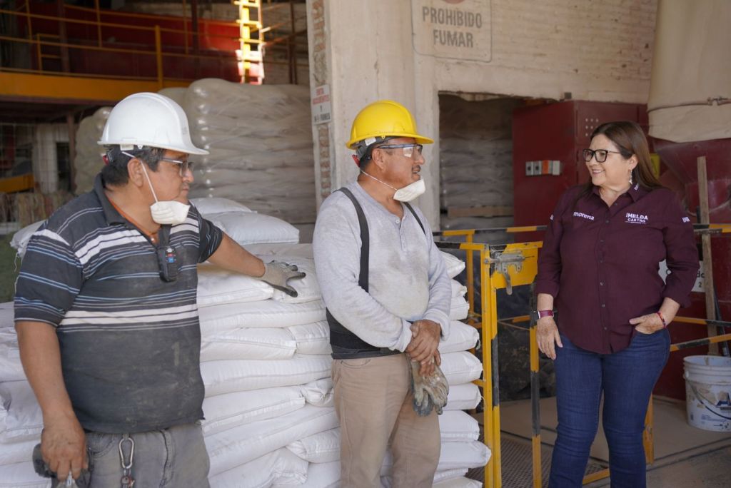 La morenista visitó esta mañana de sábado las instalaciones de Forrajes El Barrio e Industrias Matrón, ubicadas ambas en Culiacán, para dialogar con trabajadores y directivos.