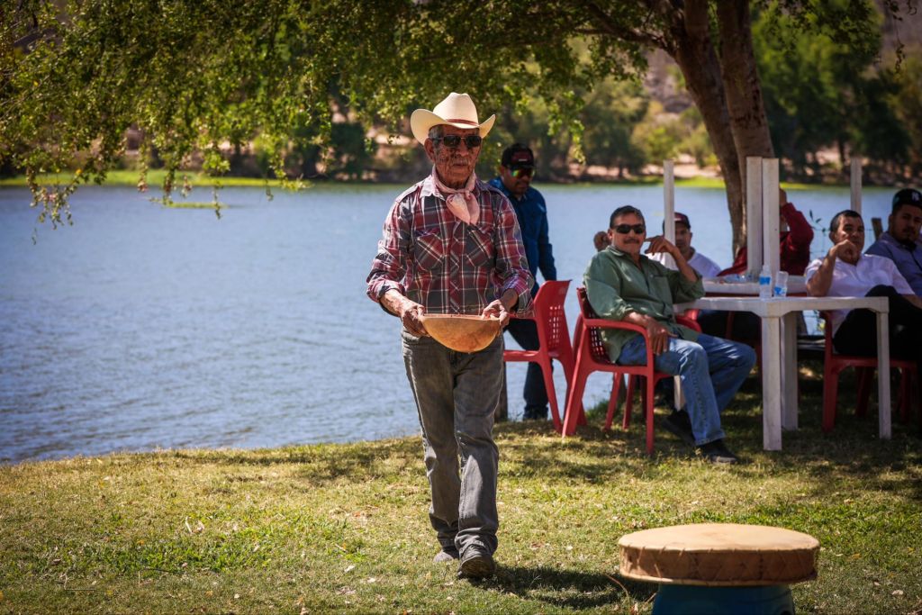 El Fuerte; 14 de mayo de 2024.- En la recta final de esta Travesía Cívica el candidato al Senado de la República Enrique Inzunza, acompañó a Gildardo Leyva Ortega en una reunión a la orilla del río en la comunidad de La Playita, Barotén, con líderes de diferentes sectores, hermanos de pueblos originarios, ganaderos, pescadores y maestros del Pueblo Mágico, El Fuerte. Quienes fueron recibidos con la emblemática Danza de Pascola y el tradicional baile del venado de los pueblos originarios Mayo-Yoreme.