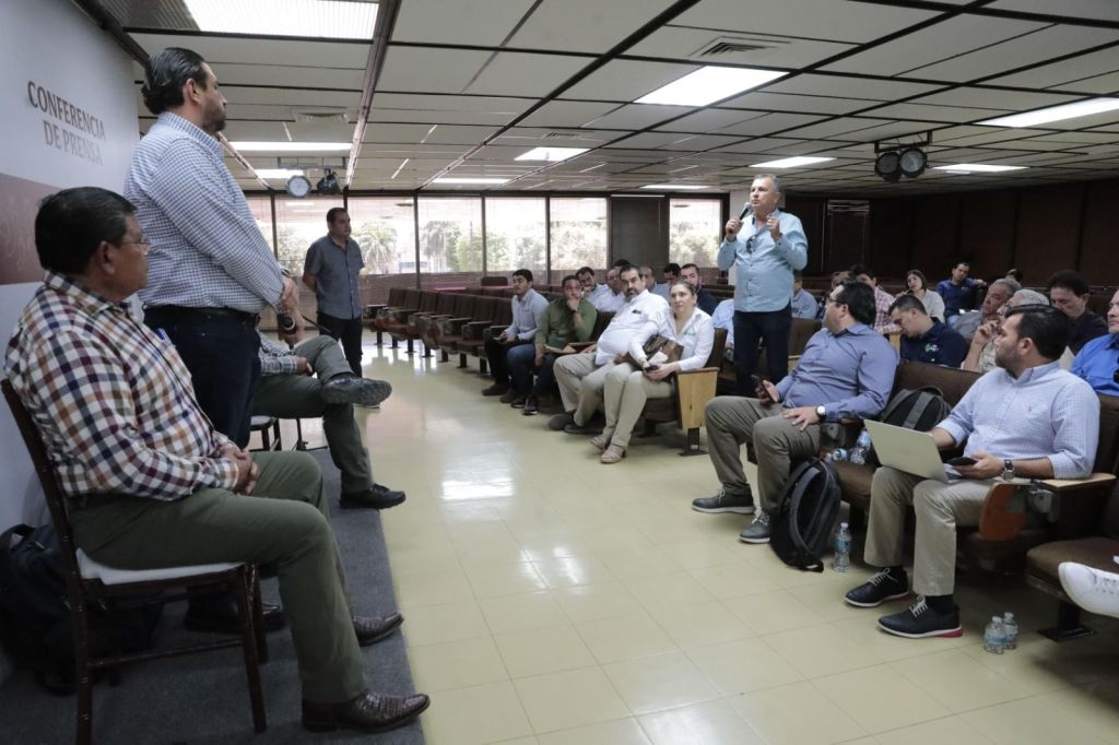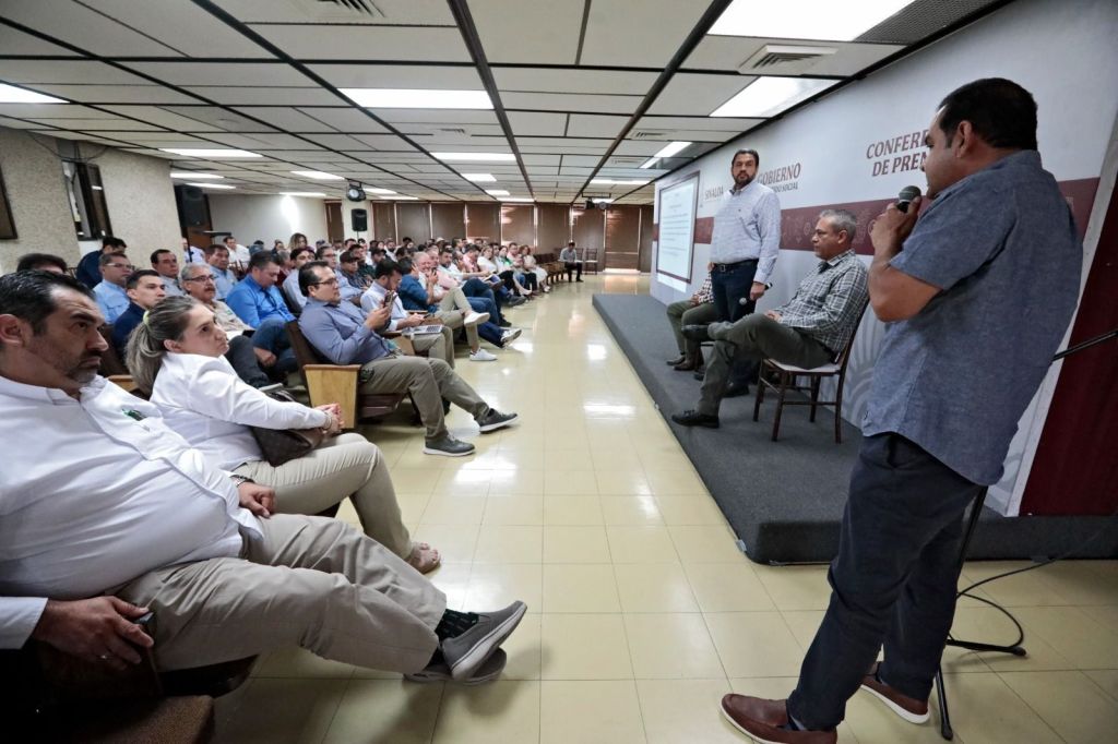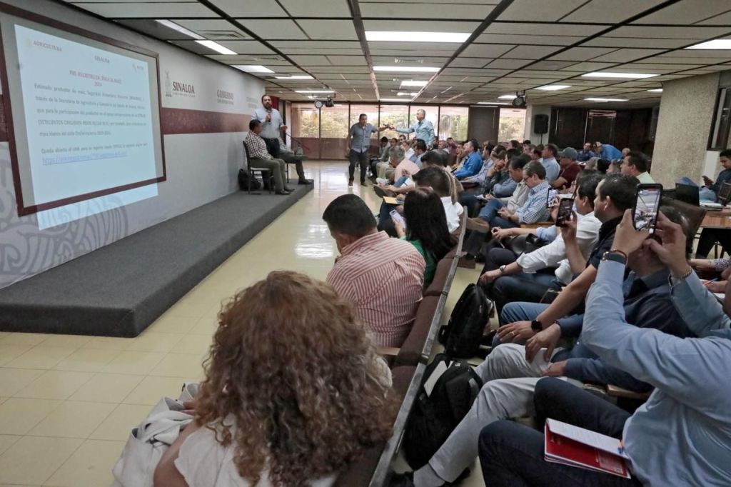 Culiacán, Sinaloa, a 16 de mayo de 2024.- Una vez que SEGALMEX abrió desde este martes el prerregistro de los productores para que reciban el apoyo de 750 pesos por tonelada de maíz que fueron gestionados por el gobernador Rubén Rocha Moya ante la Federación, el Gobierno del Estado convocó a los representantes de los centros de acopio a una reunión informativa que sirvió para despejar dudas sobre el registro para este programa emergente.En el auditorio de Palacio de Gobierno, el secretario de Agricultura y Ganadería, José Jaime Montes Salas; el director del SATES, Ismael Bello Esquivel; y el subsecretario de Agricultura, Ramón Gallegos Araiza, se reunieron con los representantes de 60 bodegas receptoras de granos, para presentar la plataforma que ya está disponible, mediante el link https://prerregistromaiz750.segalmex.gob.mx/ donde se inscribirá a los productores de manera universal, para que todos reciban ese apoyo de 750 pesos por tonelada, cuya disponibilidad presupuestal ya está garantizada en SEGALMEX y que totaliza 2 mil 850 millones de pesos de derrama económica.