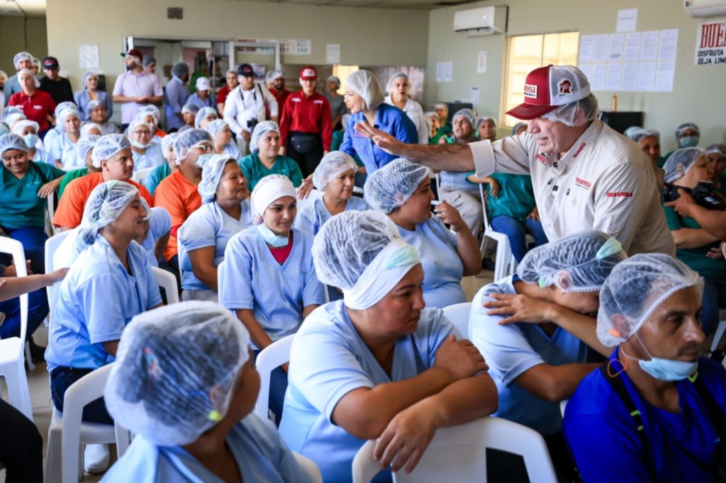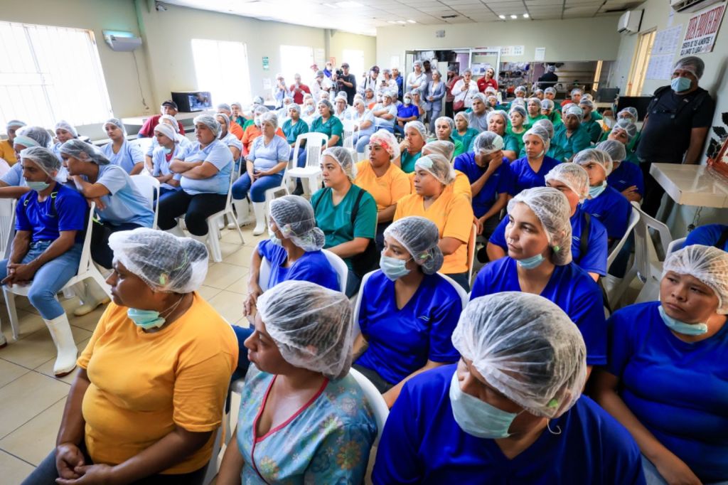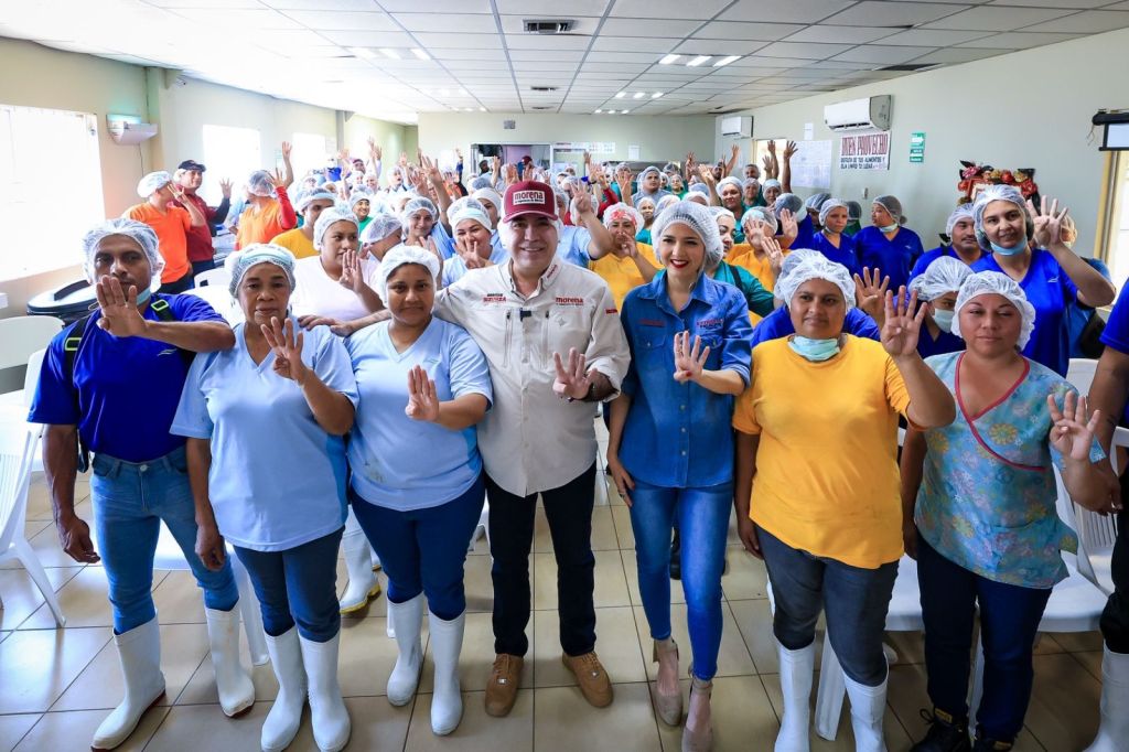 Mazatlán; 17 de mayo de 2024. El candidato al Senado de la República Enrique Inzunza Cázarez acompañado de Estrella Palacios candidata a la alcaldía de Mazatlán, sostuvieron un encuentro con los empleados de industrias Cesmar a fin de escuchar sus necesidades y dialogar sus propuestas de cara al proceso electoral del 2 de junio para construir juntos un mejor Mazatlán.