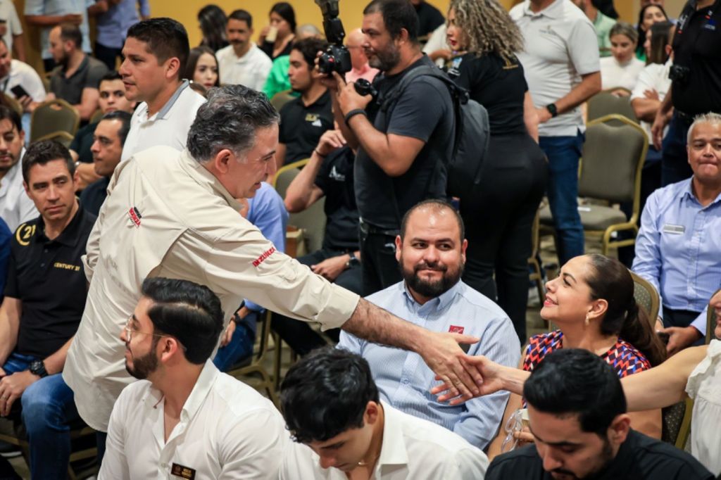 Mazatlán; 17 de mayo de 2024. En la Perla del Pacífico el candidato al Senado de la República por Morena, Enrique Inzunza Cázarez durante su travesía cívica en el día 78, sostuvo un diálogo con profesionales inmobiliarios, enfocándose en el intercambio de ideas y proyectos para enriquecer sus propuestas.