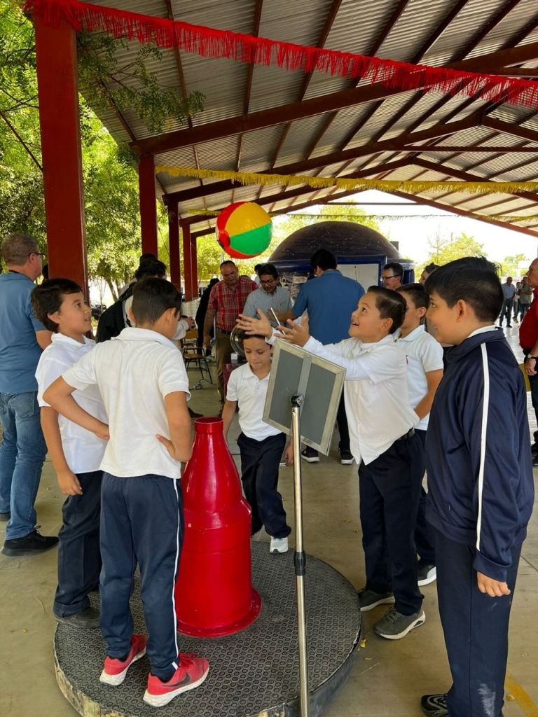 Por su parte, el alcalde Martín Ahumada Quintero invitó a los alumnos a aprender ciencia disfrutando del museo itinerante y exhortó a maestras y maestros a seguir inculcando la pasión y el interés por el conocimiento.