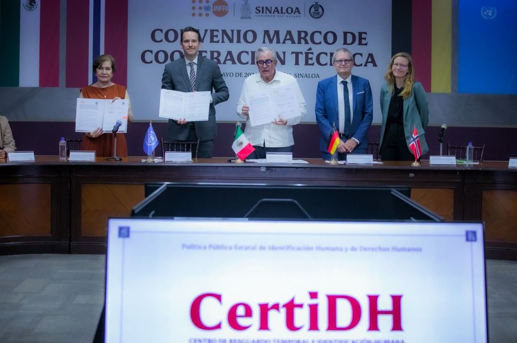 Gobierno del Estado y FGE signaron un convenio de colaboración con el Fondo de Población de las Naciones Unidas y las Embajadas de Alemania y Noruega para la identificación de restos humanos.
