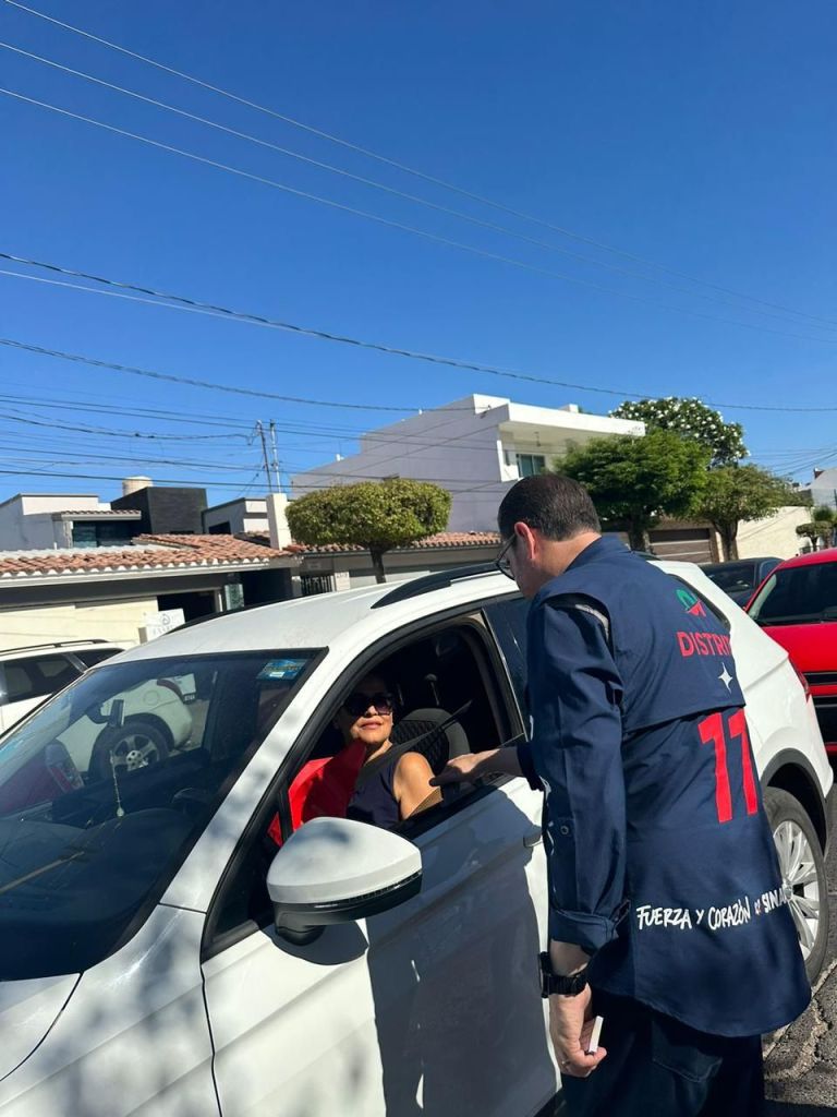 Culiacán, Sin. , jueves 23 de mayo de 2024.- Siguiendo con los recorridos de campaña, el candidato por el distrito 11 de Culiacán por la coalición “Fuerza y Corazón x Sinaloa”, conformada por PAN, PRI, PRD y PAS, Óscar Valdez López, estuvo esta mañana en el crucero de Villa Universidad y Calzada Las Américas saludando a ciudadanos que transitaban por el sector.
