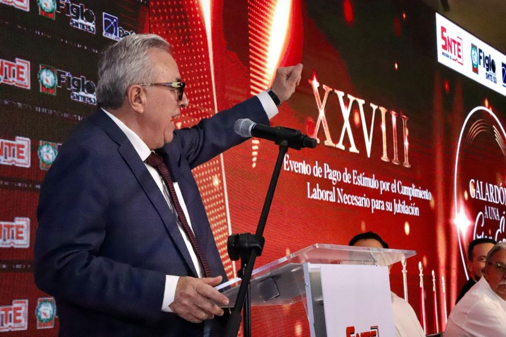 «Muchísimas gracias, doctor Rubén Rocha Moya, nuestro Gobernador Constitucional por estar el día de hoy acompañándonos, está en su casa, esta con sus amigos, esta con sus maestros, esta con la familia de los maestros, muchísimas gracias», señaló Madrid Uriarte.