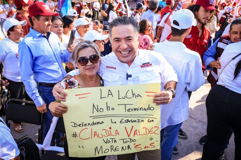 El candidato al Senado de la República en segunda fórmula, Enrique Inzunza, afirmó; “¡si es Claudia es buena!”. Además señaló que este 2 de junio tenemos dos caminos, uno el que venimos recorriendo desde 2018, de la mano de López Obrador, un camino donde cabemos todas y todos, «cabe todo el pueblo de México» y el otro camino, el de la corrupción y privilegios que quieren los del PRIAN.