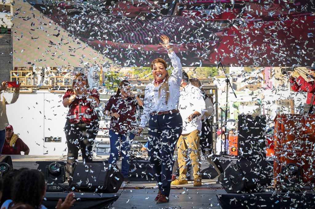 Ante más de 3 mil rosarenses, los candidatos al Senado de Morena, Imelda Castro y Enrique Inzunza, asistieron al cierre de campaña de la candidata a la presidencia municipal Claudia Valdez.