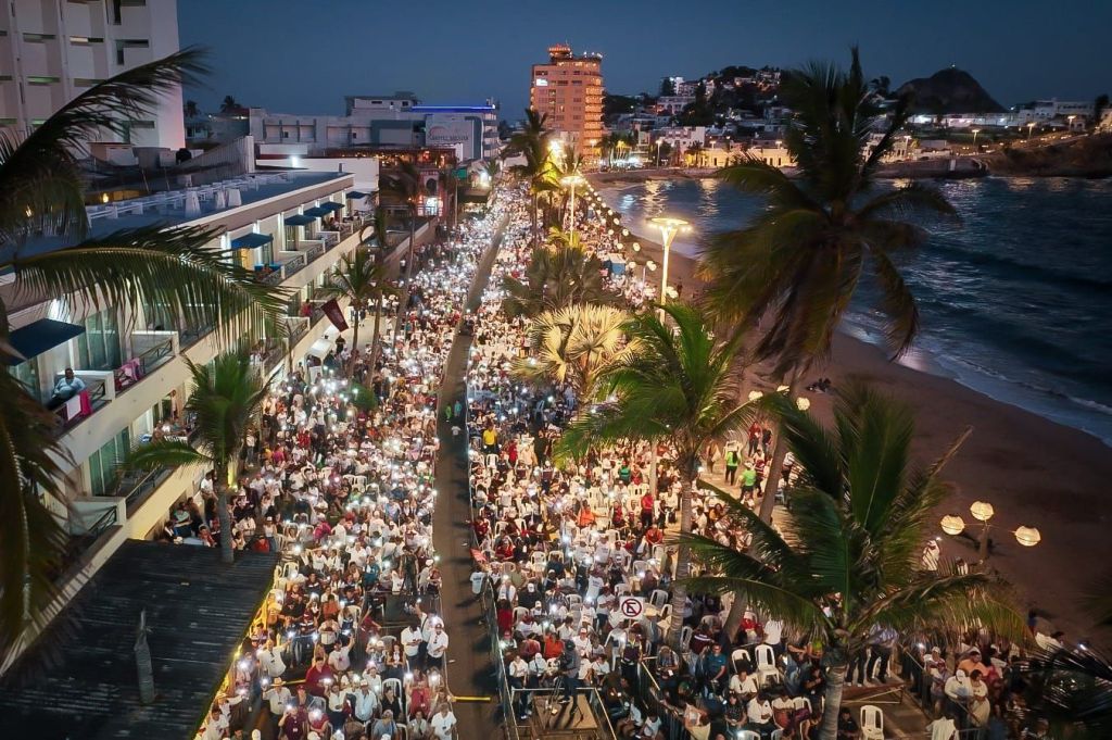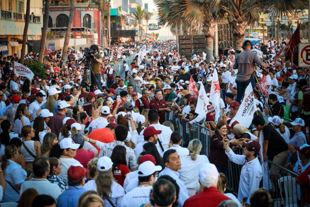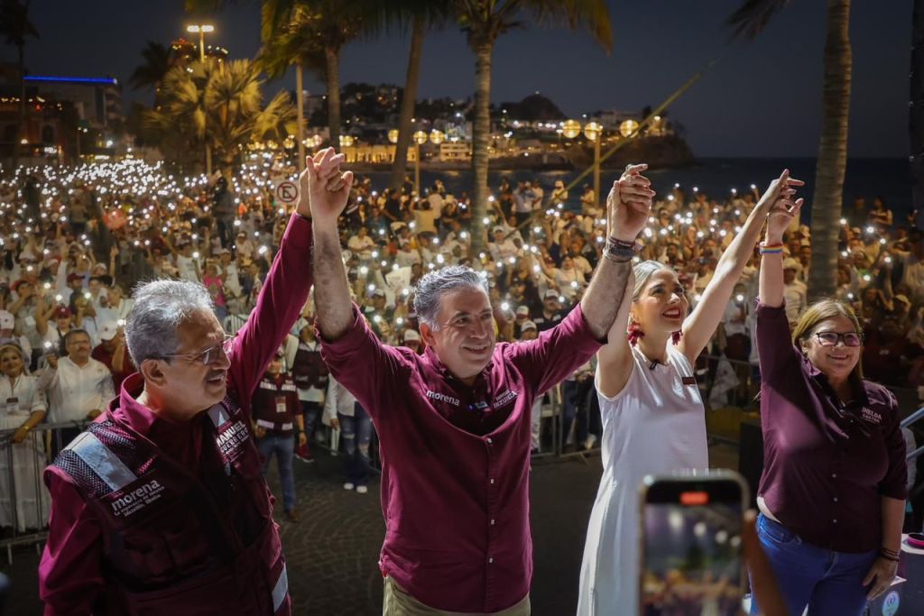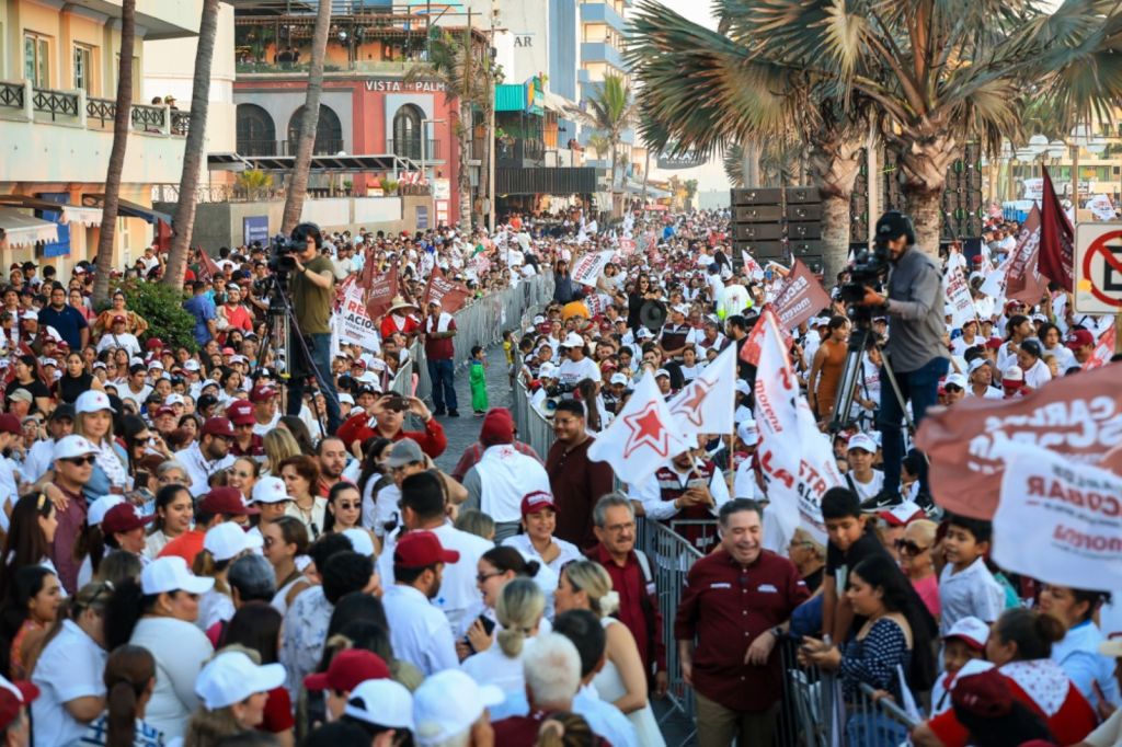 En un ambiente de fiesta, y un clima cálido, al unísono de porras ¡Presidenta, Presidenta! ¡Estrella, el pueblo está contigo!, con el mar y si atardecer de fondo; y la estatua de El Venadito como testigo; los candidatos morenistas arribaron al Paseo Olas Altas acompañados de Manuel Guerrero, Presidente de Morena en Sinaloa, saludando durante el recorrido al templete, a los miles de congregados, que no dudaban en felicitarlos y pedir la famosa fotografía del recuerdo, también reafirmarles su compromiso con a la Cuarta Transformación.