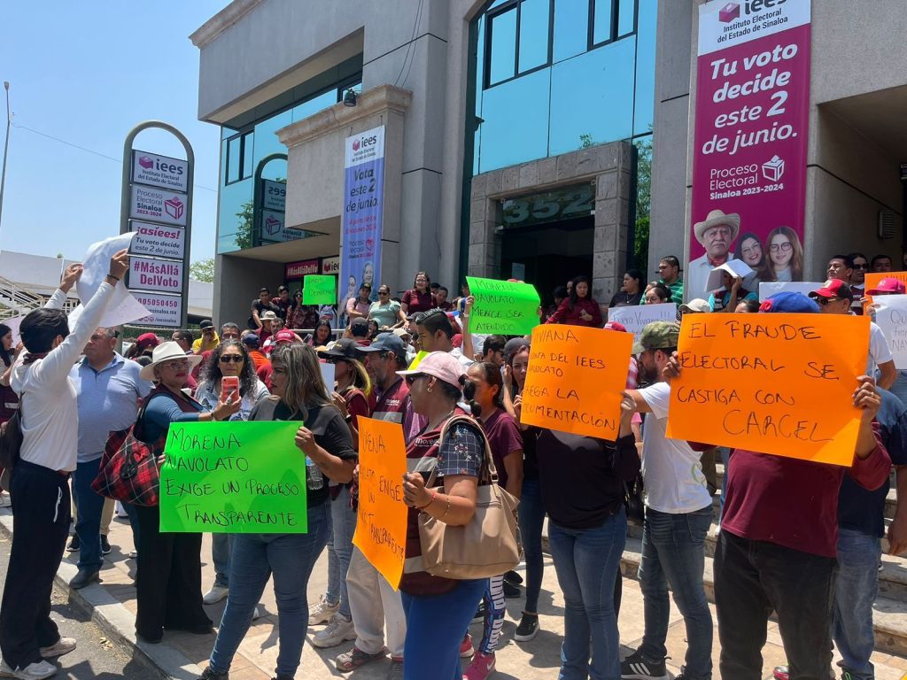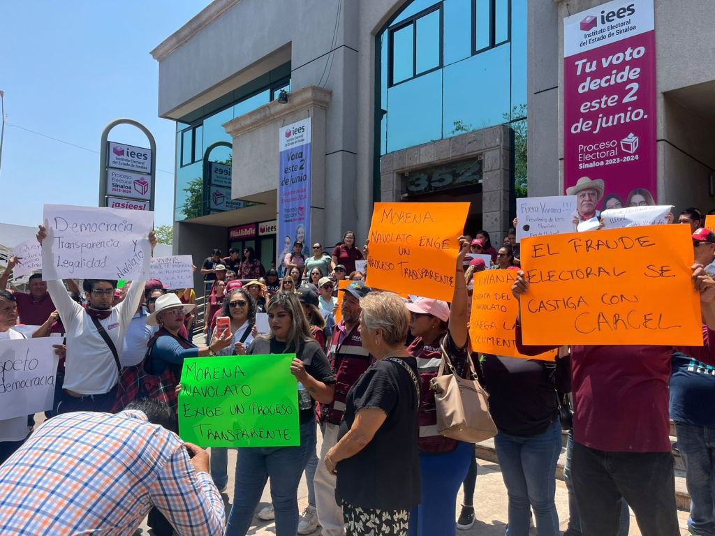 Culiacan, Sinaloa, a 10 de junio de 2024. Ante la falta de respuesta del Consejo Municipal del IEES en Navolato, a cargo de la presidenta Guadalupe Viviana González Payán, quien no ha querido entregar los resultados de la elección a la alcaldía como las hojas de resultados casilla por casilla y voto por voto, así como actas de sesiones y otros documentos, un grupo de militantes y simpatizantes de Morena acudieron este lunes a las instalaciones del Instituto Electoral del Estado de Sinaloa para hacer la petición de manera presencia de la información solicitada desde el día jueves 6 de junio en el Consejo Municipal de Navolato, y que hasta la fecha no ha habido ninguna respuesta a pesar de que en procesos electorales los días sábados y domingos también son hábiles para la autoridad electoral.