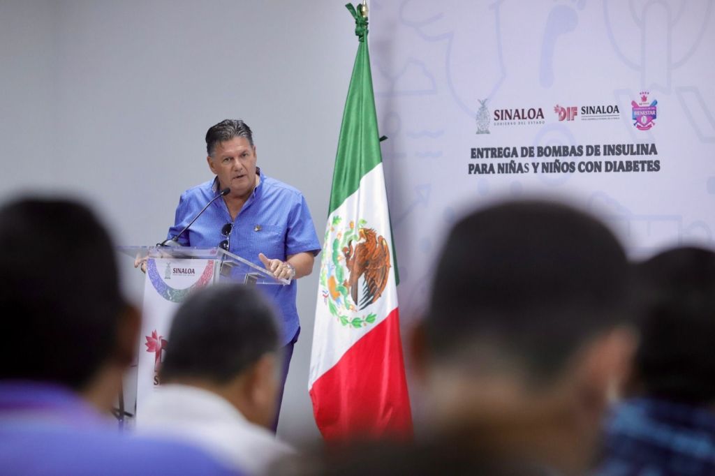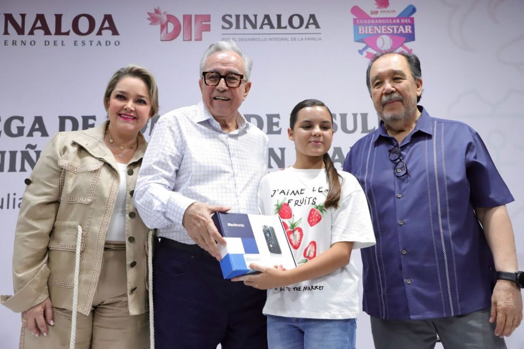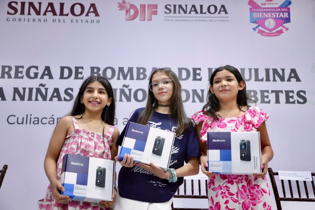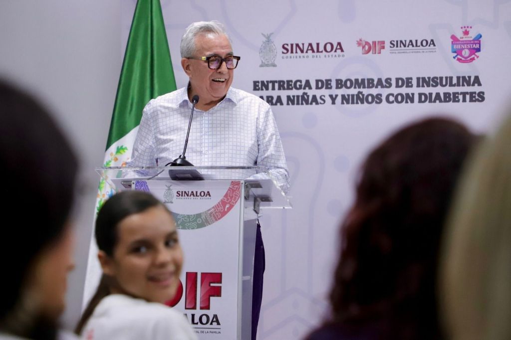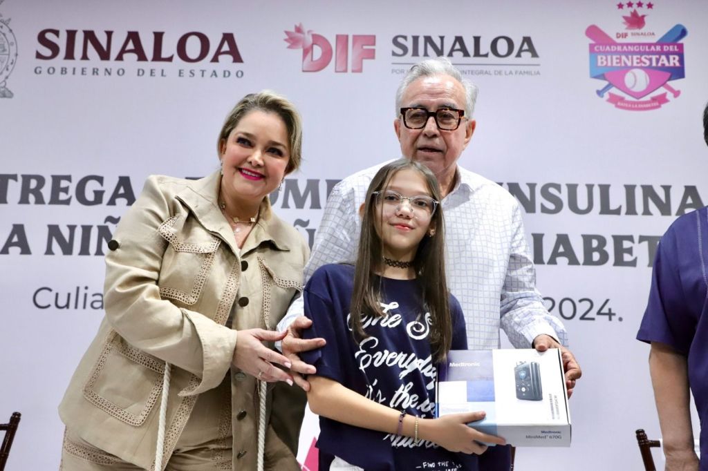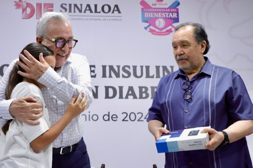 Para ello, el gobernador Rubén Rocha Moya, acompañado por su hija, la presidenta del DIF, y los representantes de los equipos de beisbol profesionales, recibió en Palacio de Gobierno a las primeras nueve familias que fueron beneficiadas con este apoyo, con la donación de estos dispositivos que ya fueron colocados en las niñas y niños para regular el suministro de insulina en sus organismos.