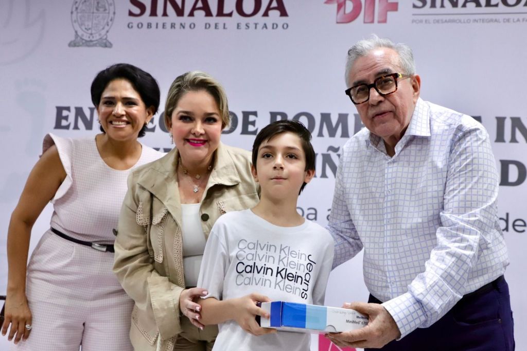 Destacó que en esta nueva edición del Cuadrangular del Bienestar el apoyo fue para niñas y niños con diabetes, y los primeros dispositivos entregados fueron para los niños Oscar, Michelle, Caleb, Amílcar y Dorian, todos ellos de Culiacán; Camila y María José, ambas de Angostura; más Janeth, de El Fuerte, y Emanuel, de Mazatlán, quienes estuvieron acompañados por sus padres y hasta abuelos para recibir su apoyo.