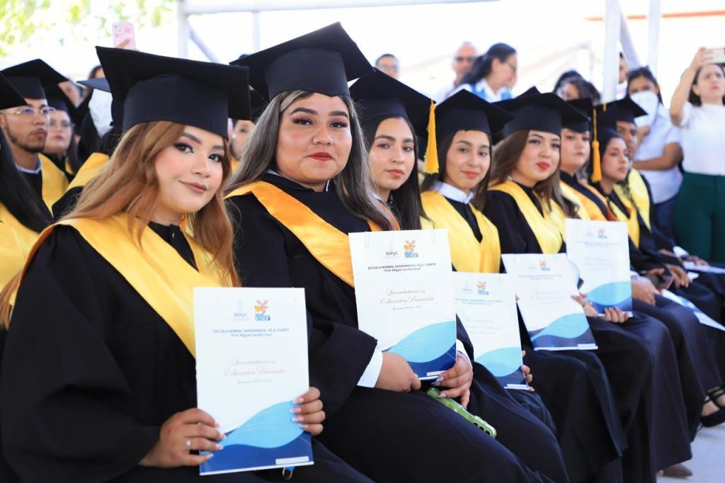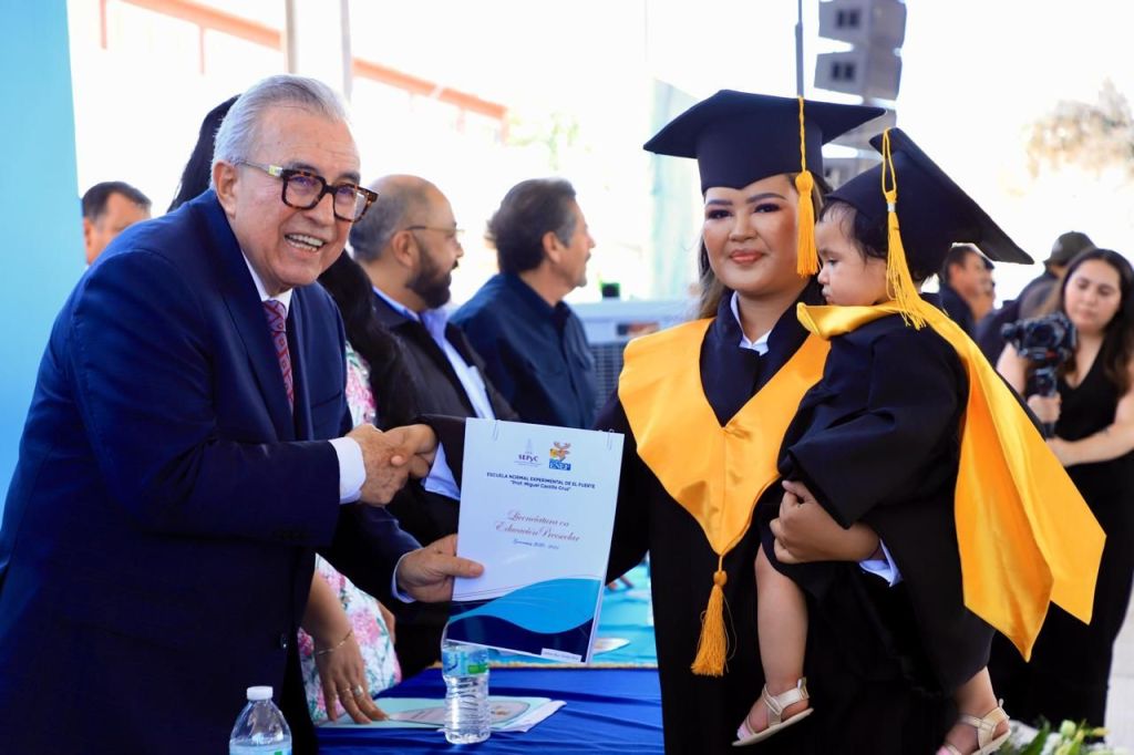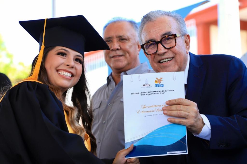 Por este motivo, el gobernador Rocha destacó que es la primera ocasión, como gobernador, que asiste a una ceremonia de graduación, y por ello aceptó con agrado la invitación que le hicieron en la Escuela Normal Experimental de El Fuerte, de entregar sus diplomados a los casi 200 egresados, con quienes compartió el tradicional momento de arrojar al aire sus birretes, como símbolo de fin de cursos.