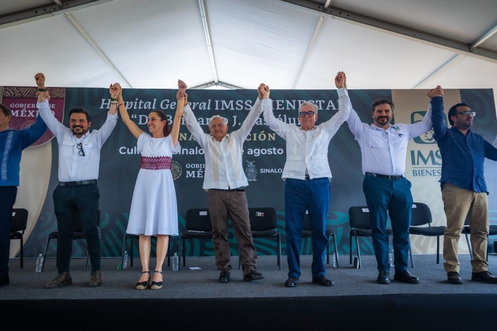 También acompañaron al presidente López Obrador, al gobernador Rocha y a Claudia Sheinbaum en el presídium, el director general del IMSS Bienestar, doctor Alejandro Calderón Alipi; y el presidente municipal de Culiacán, Juan de Dios Gámez Mendívil, en su calidad de anfitrión.