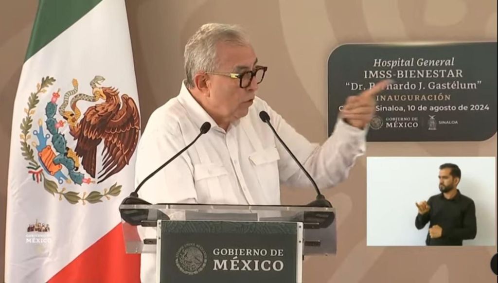 «Los problemas que le tocan al gobierno los resolvemos en las instituciones de gobierno, no tenemos nosotros complicidad con nadie y eso es profesando justamente la política del Presidente, no hay complicidades, por lo tanto, si dijeron que iba a estar yo, pues mintieron y si les creyó, pues cayó en la trampa», enfatizó Rocha Moya ante el Presidente López Obrador y la Presidenta Electa de México, Claudia Sheinbaum Pardo, durante la inauguración del Hospital IMSS- Bienestar «Dr. Bernardo J. Gastélum».