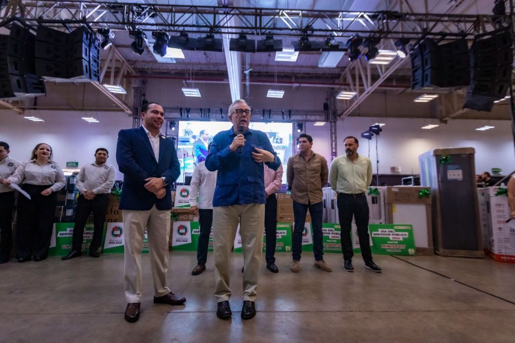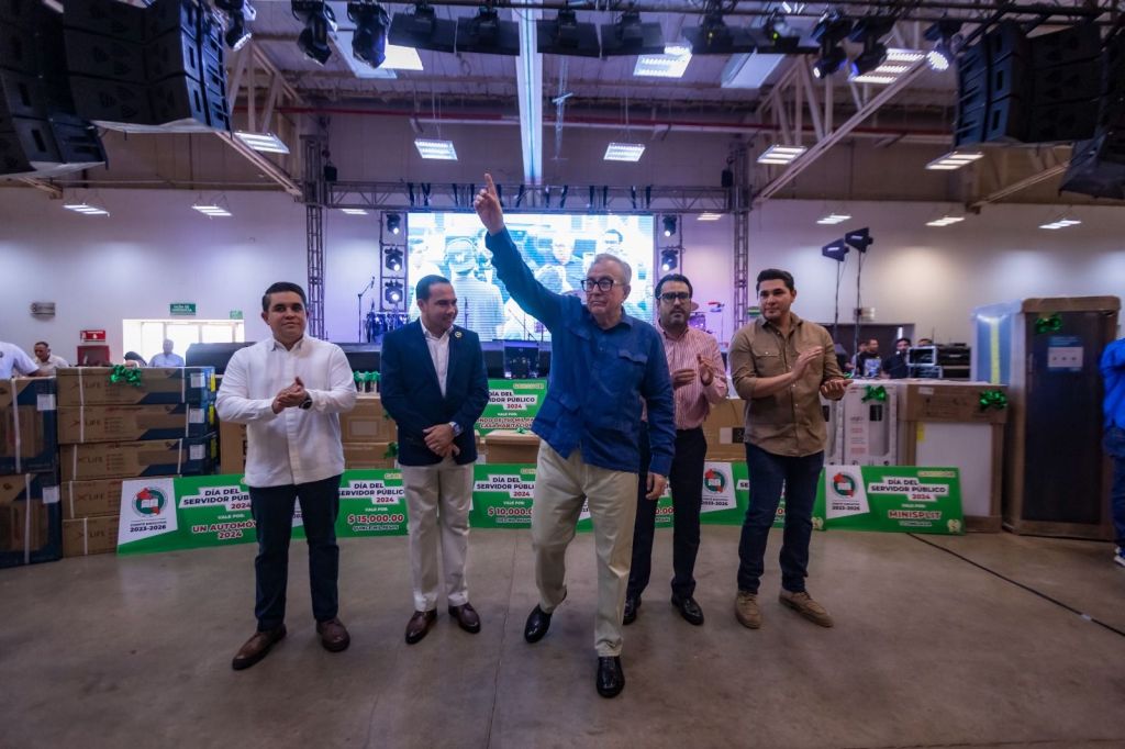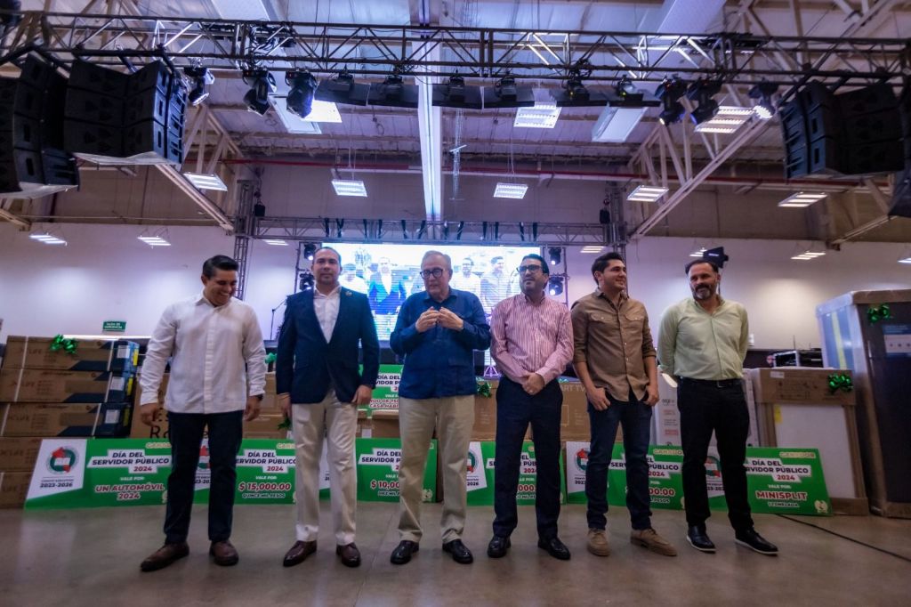 Tal como lo hizo también en las ediciones anteriores, el gobernador Rocha aportó regalos adicionales a rifarse entre los trabajadores, como fueron 30 laptops, 40 minisplits y 40 pantallas de televisión.