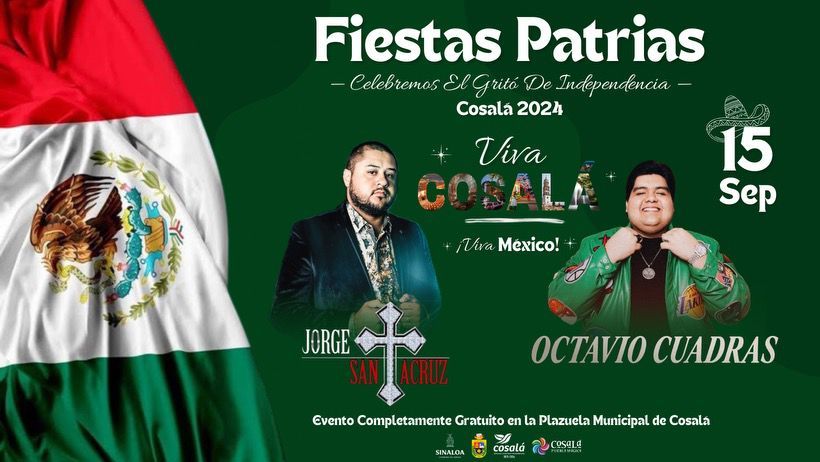 Iniciando con los festejos patrios desde el 14 de septiembre con un festival cultural a cargo del ballet del Instituto de Cultura de Culiacán y el 15 de septiembre el tradicional Grito de Independencia de parte del alcalde José Juan Conde Madueño, amenizado por el cantante cosalteco Pedro Haros “Kanales”, en la plazuela municipal.