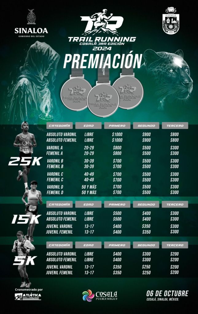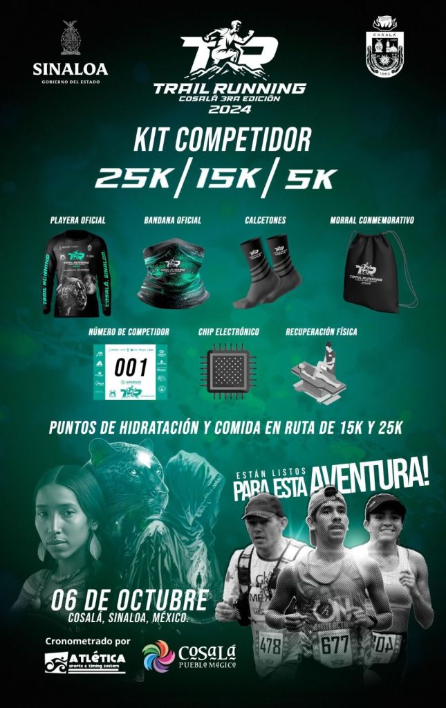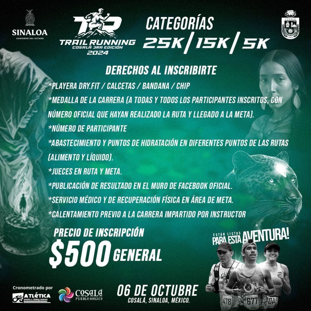 Con el apoyo del Instituto Sinaloense del Deporte y el Instituto Municipal del Deporte, se celebrará la tercera edición de la carrera Trail Running Cosalá 2024 el domingo 6 de octubre.