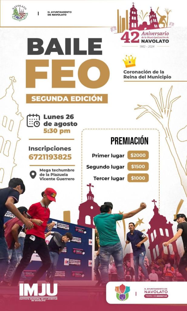 * Concurso de baile feo, inscripciones abiertas al 6721193825, se premiarán a los primeros tres lugares: 1er lugar 2 mil pesos; 2do lugar 1,500 pesos; 3er lugar mil pesos.