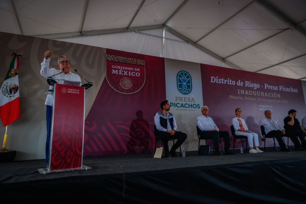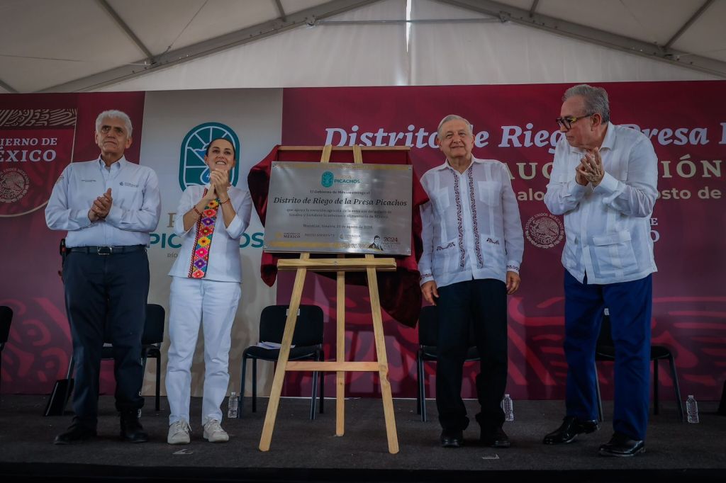 El gobernador del estado acompañó al presidente de México, Andrés Manuel López Obrador, y a la presidenta electa, Claudia Sheinbaum, a la inauguración del Distrito de Riego de la presa Picachos.