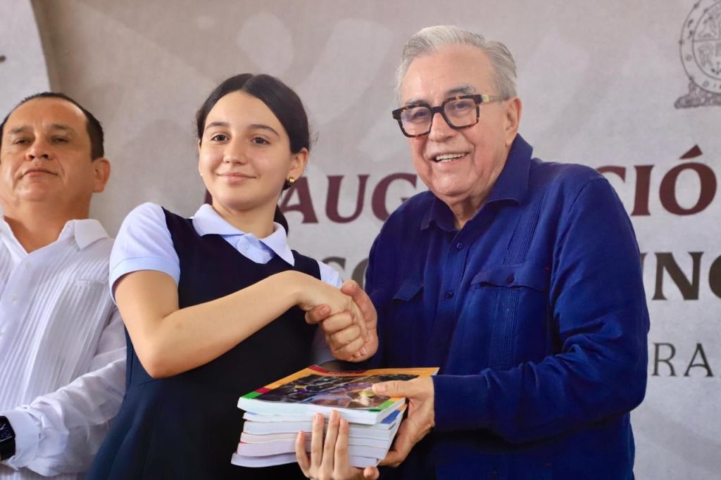 Así mismo, informó de la entrega de miles de uniformes, calzado deportivo y útiles escolares en apoyo a las familias y a partir de hoy la entrega de libros de texto gratuitos, agregando que a partir de enero y gracias al gobierno que encabezará la Dra. Claudia Sheinbaum, los estudiantes de educación básica serán acreedores a una beca. «Va a ser una bequita, les va a ayudar mucho, a los papás, mucho. Así como se les da a los de prepa», señaló el gobernador, al tiempo que a los maestros les confirmó la desaparición del USICAMM.