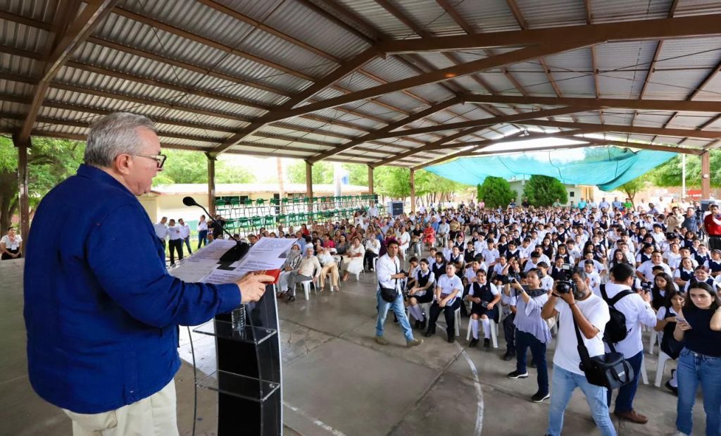 El mandatario estatal puso en marcha el ciclo escolar 2024-2025 en la Escuela Secundaria Juan de Dios Bátiz Paredes en Estación Naranjo, Sinaloa municipio.