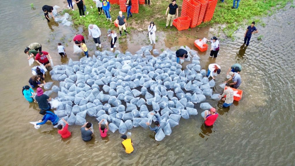 Culiacán, Sinaloa a 28 de agosto de 2024.- En un esfuerzo por fortalecer la actividad pesquera y mejorar la producción de tilapia en el estado, la Secretaría de Pesca y Acuacultura, llevó a cabo la siembra de 600 mil alevines en la Presa Sanalona, como parte de la tercera etapa del programa de Repoblamiento de Presas y Embalses.