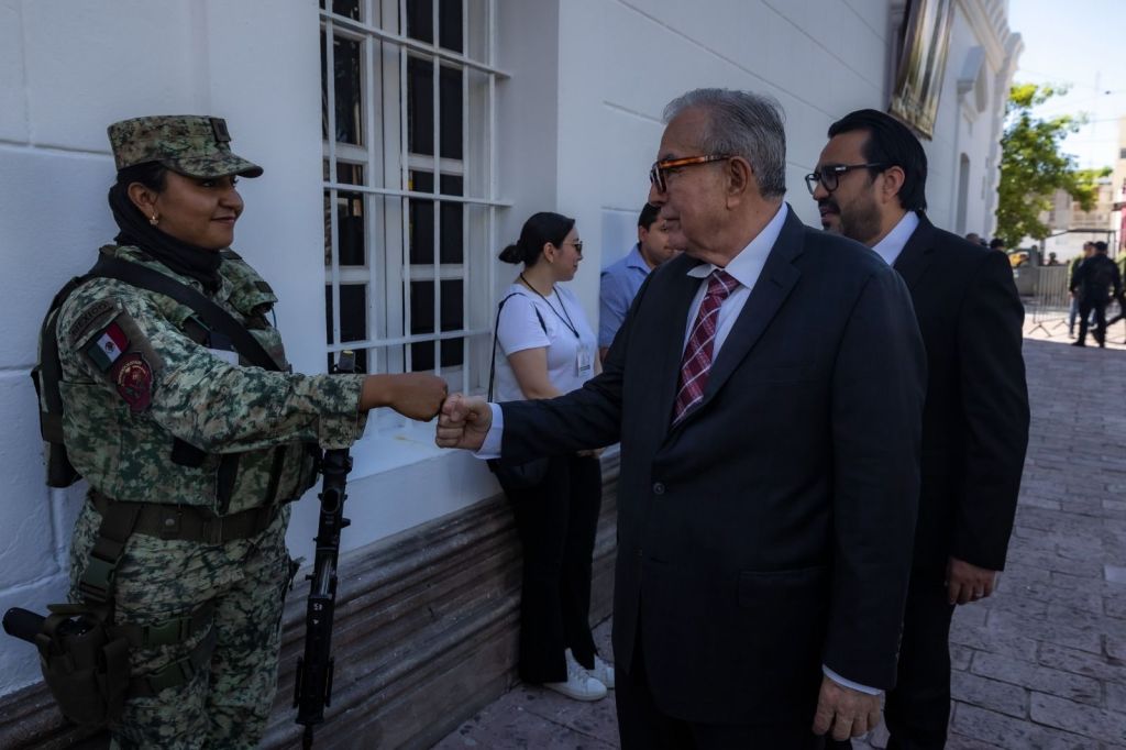 El mandatario estatal estuvo acompañado por el presidente del Supremo Tribunal de Justicia, Magistrado Jesús Iván Chávez Rangel, por el comandante de la Tercera Región Militar, General de División, Francisco de Jesús Leana Ojeda, por el Comandante de la Novena Zona Militar, General de Brigada, Porfirio Fuentes Vélez, por la presidenta de la Mesa Directiva del Congreso del Estado, diputada Gloria Himelda Félix Niebla.