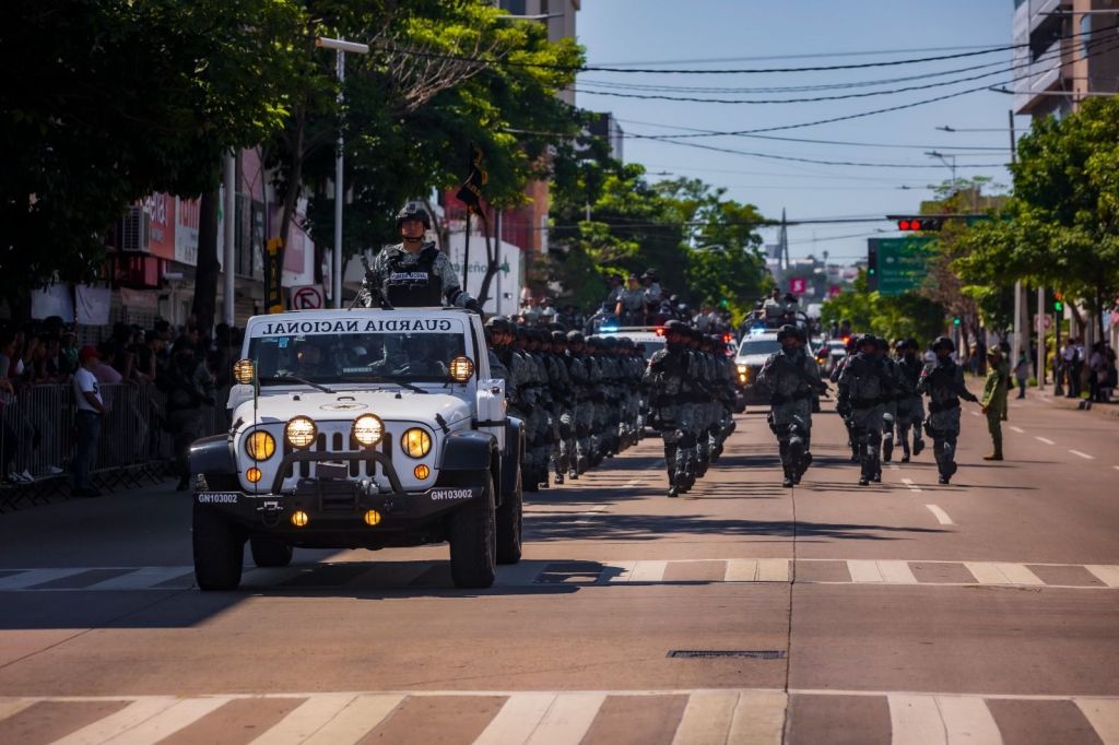 Culiacán, Sinaloa, a 16 de Septiembre de 2024.- Esta mañana, el Gobernador Rubén Rocha Moya presenció el tradicional desfile militar para conmemorar el CCXIV Aniversario del inicio de la Independencia de México que como cada año se desarrolló por la avenida Álvaro Obregón, principal arteria de la ciudad, para el disfrute de las familias culiacanenses que se dieron cita para atestiguar el paso de las columnas militares, grupos especiales, cuerpos de Élite de la Defensa Nacional, Marina Armada de México y Guardia Nacional que fueron encabezadas por las diferentes escoltas con la Bandera Nacional al frente.