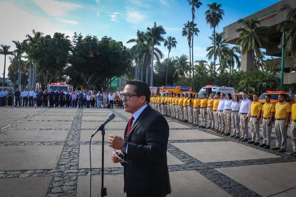 Culiacán, Sinaloa 19 de septiembre de 2024.- En conmemoración de los sismos ocurridos en 1985 y 2017 que afectaron varios estados del país y el Día Nacional de Protección Civil, el titular de la dependencia en el estado Roy Navarrete Cuevas, encabezó el acto conmemorativo en representación del Ejecutivo.El espíritu de la Protección Civil y Gestión de Riesgos es trabajar en la reducción de riesgos, autoprotección y resiliencia, con el fin de salvaguardar la integridad física de las personas, su patrimonio, biodiversidad y entorno socioeconómico del Estado y del País.