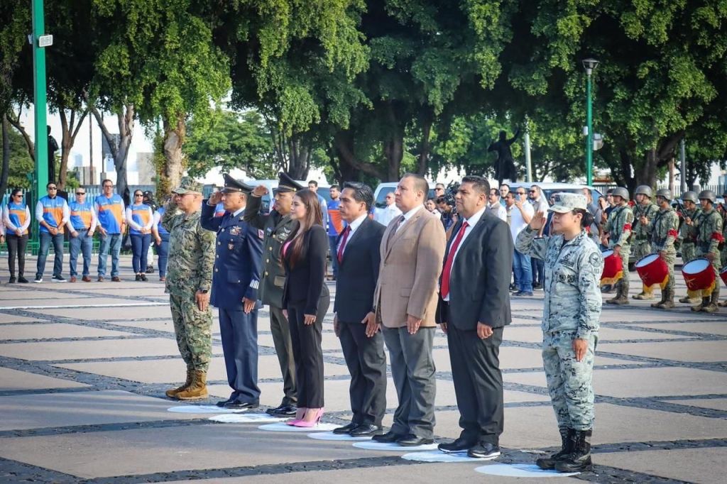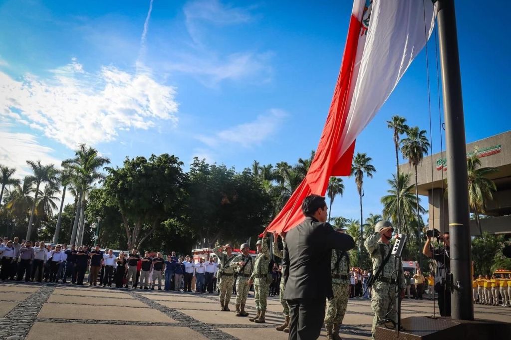 El acto cívico se llevó a cabo en la explanada de Palacio de Gobierno, contando con la presencia de la diputada María Guadalupe Cázares Gallego en representación del Congreso del Estado, el Magistrado Presidente del Supremo Tribunal de Justicia Jesús Iván Chávez Rangel, Jesús Bill Mendoza Ontiveros Coordinador Municipal de Protección Civil, Alondra Banderas representante de la Guardia Nacional, el Capitán Navío Efrén Ortega Espinosa de la Octava Región Militar y el Capitán Segundo de Infantería Noel Mazaba Aguilar de la Novena Zona Militar.