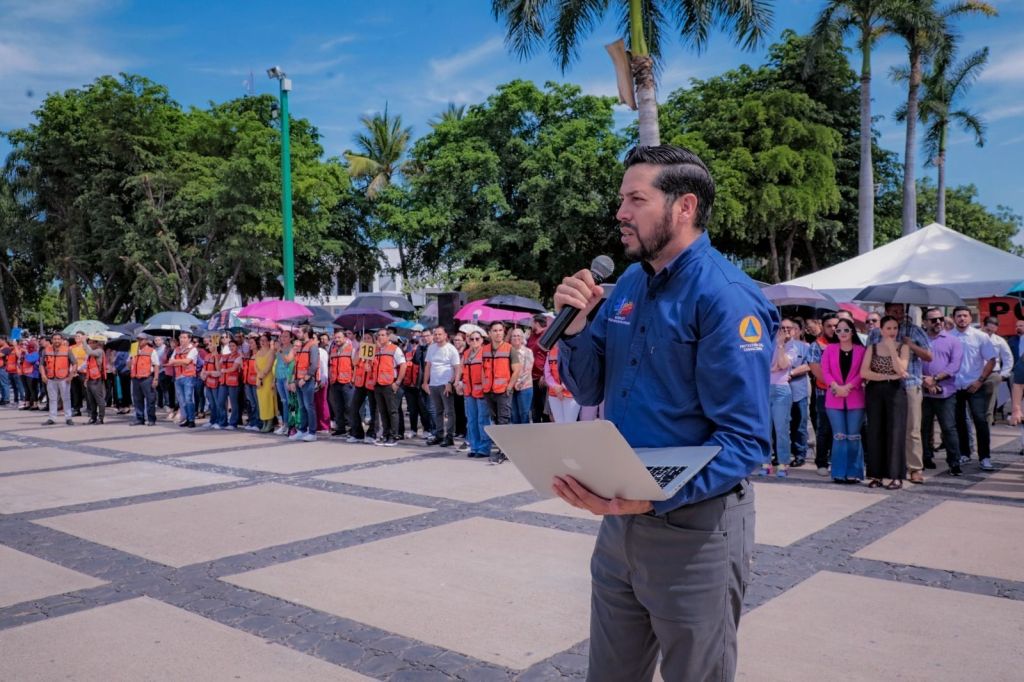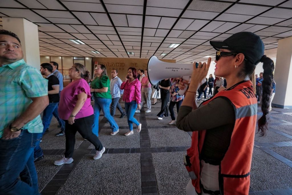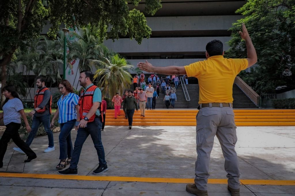 “Muchísimas gracias por la participación en este simulacro nacional de Protección Civil, es el segundo año que participa Palacio de Gobierno, históricamente no se habían hecho estos simulacros; por instrucciones del gobernador hicimos el simulacro el año pasado, este año también, y comentarles que el año pasado nuestro ejercicio llevó un tiempo máximo de 8 minutos 29 segundos, -ahora- llevamos un máximo de 7 minutos con 20 segundos, un aplauso para ustedes, bajamos el tiempo, lo hicieron de manera extraordinaria, muchas felicidades”, dijo.